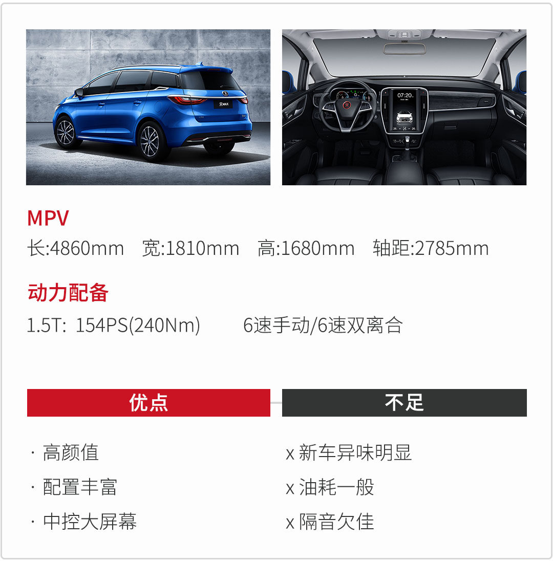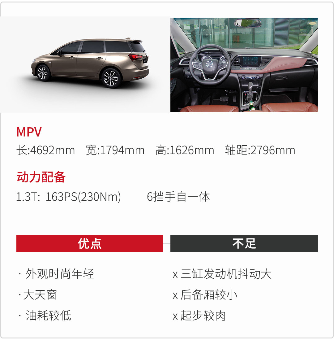 总结:如果家里面不止一个小孩,那么购买一台MPV便是非常明智的选择,一家老小出行,游山玩水看看外面世界,所带来的不只是见识,还有心灵的放松。三款MPV寸有所长,外观内饰上也有很大的差异,价格也有高低,非常适合当下年轻家庭。消费者可根据自己的预算选择适合自己的那一台车。有时候车虽然只是个交通工具,但是它承载着很多很多东西,亦或是一种心情,亦或是一个家庭。