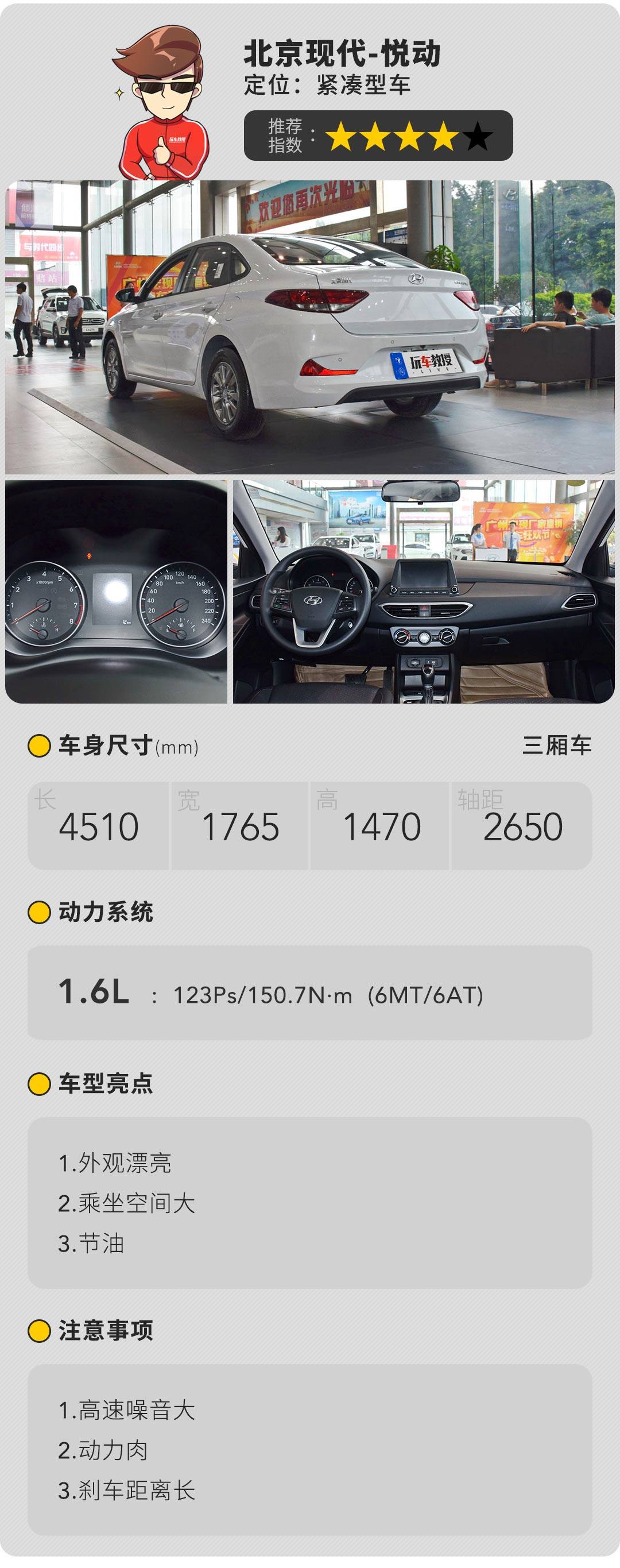 悦动长期低迷的销量表现让我们忽略了这款车型的存在。实际上,悦动比自己高半级的领动只短了10cm。同价位下的悦动和领动相比,悦动的配置要高出不少,而领动则只是在动力上多了6马力和5牛·米。选谁?我相信你心中已经有数。