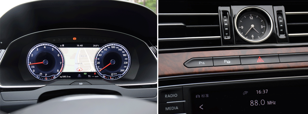 中控屏幕上方不知有别致的石英钟,配合内饰沉稳的格调更体现出商务气息。高配车型还提供液晶仪表盘,其显示效果相当精细,整体精致感和商务气息都已十分突出!