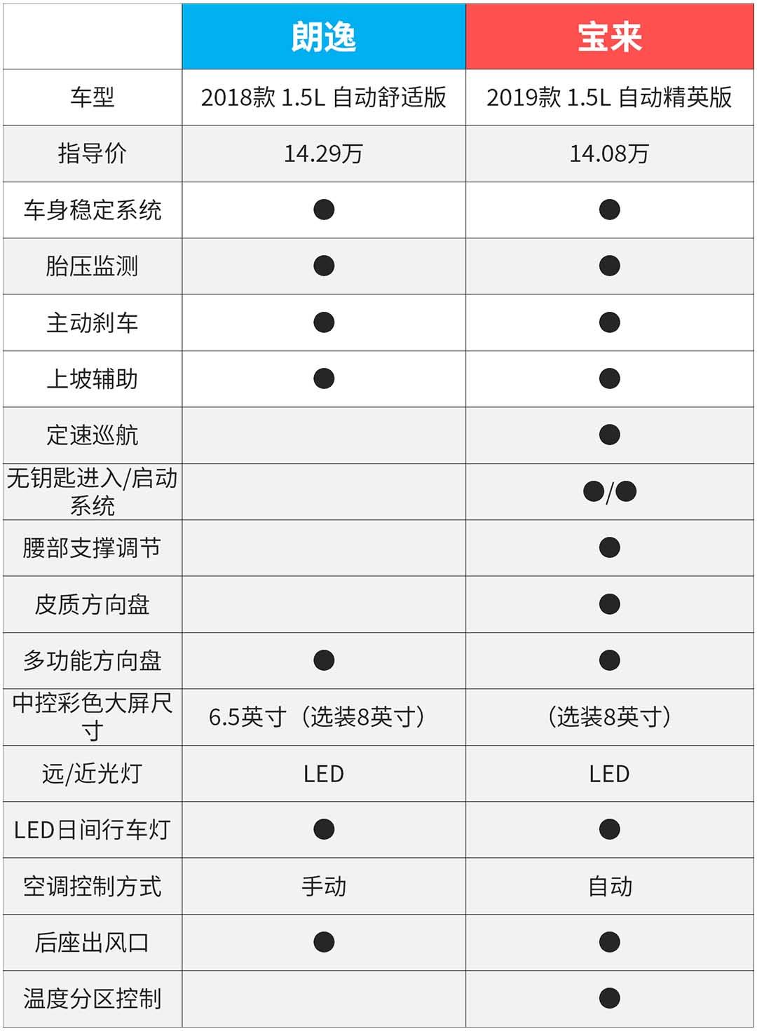 选取二者价格相邻的配置作为参考,宝来在比朗逸低2千的基础上,更多了定速巡航,无钥匙进入/启动,腰部支撑调节,温度分区控制,皮质方向盘,显然是宝来更厚道。