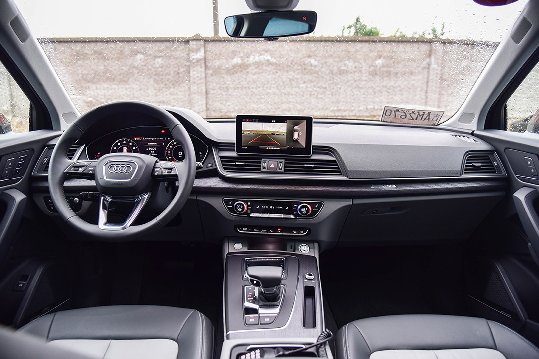 实际驾驶中,这副新的动力总成感觉并没有预想中的突兀。一方面大众奥迪对于双离合变速箱的调教已经相当炉火纯青,另一方面,一般城市使用两驱模式少了四驱传动上的一些额外负载,因此变速箱和发动机的负担少了一些,驾驶也显得更轻盈。这次试驾的高功率版Q5L,最大马力有252匹,最大扭矩有370牛米,百公里加速能在7秒内完成。不过一般行驶时,估计由于为了降低油耗和提升舒适性,普通模式下油门反应比较迟缓。如果想驾驶的更轻快,更建议去使用运动模式或者手动模式来保持高一点转速。整体而言动力性能表现还算不错。