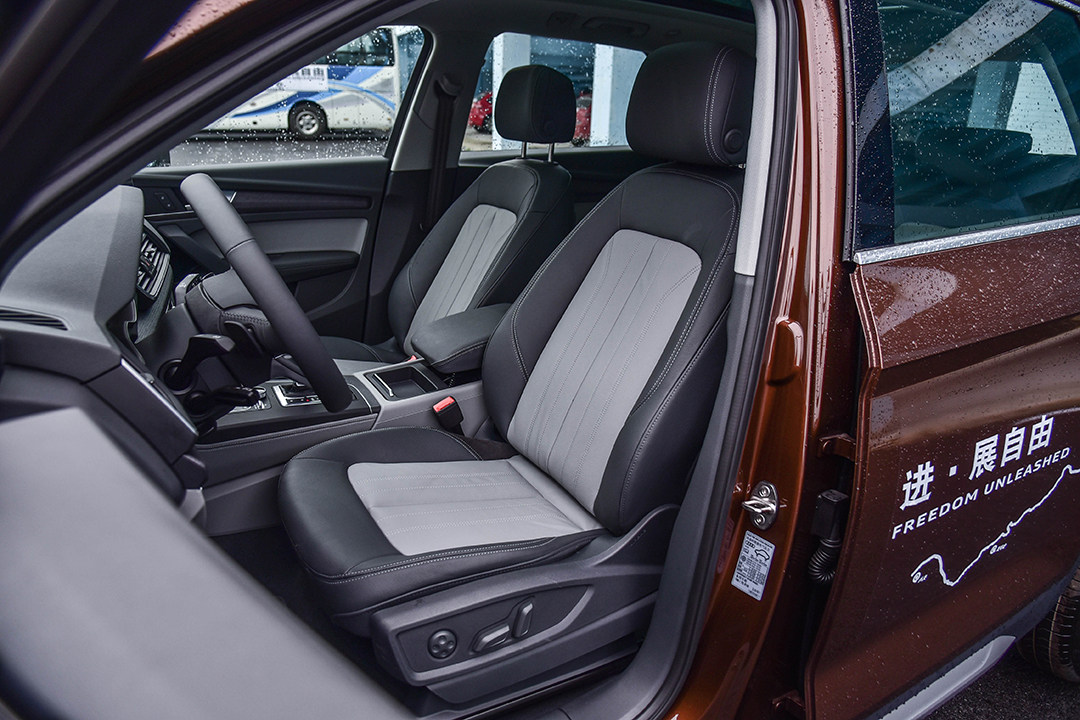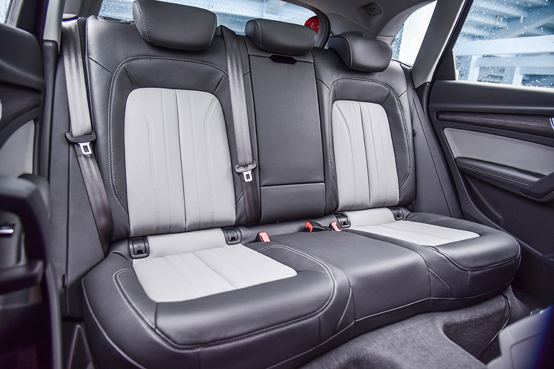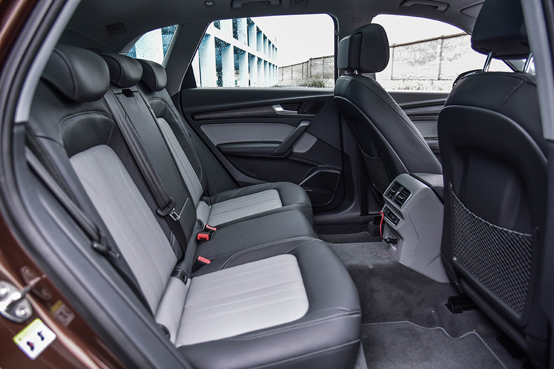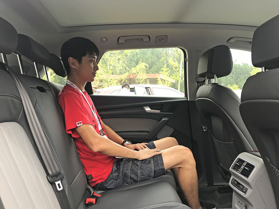 乘坐空间方面,Q5L在这个级别暂时是没有任何对手,特别是后排空间方面。以笔者的身材,后排座椅的腿部空间超过两拳,坐两人时都可以采用”葛优躺“的姿势。座椅方面包裹性和人体工学都不错,只是稍嫌座椅的填充会稍稍偏硬一些。根据以往的经验,这种设定能够降低长途乘坐的身体疲劳。不过估计国内的消费者可能会更喜好软绵绵的大沙发把。