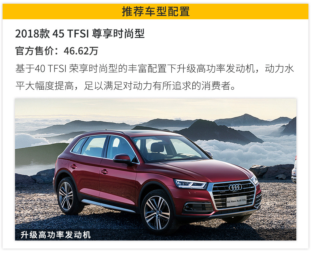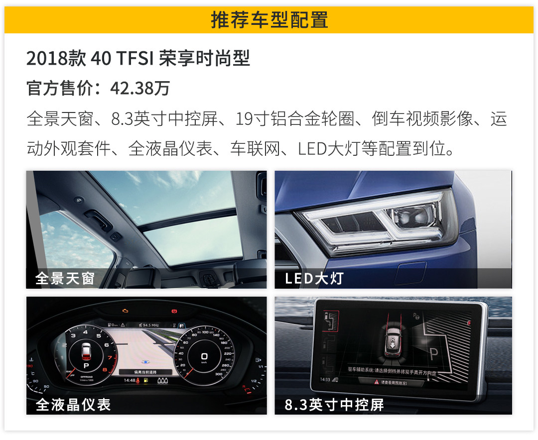 如果对动力有追求,那么其实选择45TFSI的最低配就够,因为其他更高的配置虽然加价不贵,但实际配置的实用性并不高,或者说其价值并不高,而最低配已经有了这个级别最基本最实用的配置了。