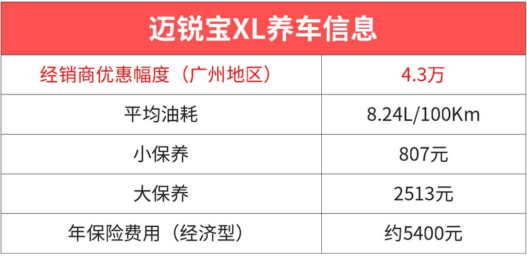 迈锐宝XL的优惠力度更大,整个车系基本都有4.3万的裸车优惠(以广州地区为例)。和蒙迪欧一样,迈锐宝XL的养车费用同样很低,小保养只为807元,就B级车的保养价格来说,迈锐宝XL属于好养的一类车。