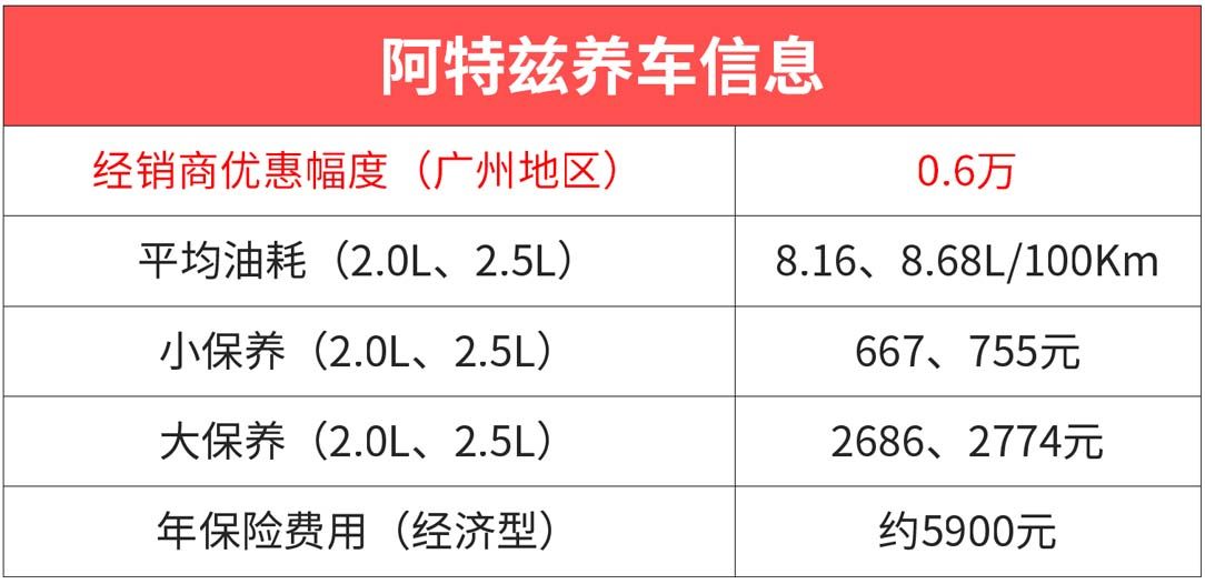 专心造车的马自达在价格上面也是独树一帜,你很难发现马自达的在售车型有大幅度的降价优惠。不过从侧面也可以反映出马自达的自信以及市场对这款车的认可度。阿特兹的小保养比迈锐宝XL更为便宜,只需558-646元。本身2.0L、2.5L车型的油耗也不高。综合来看阿特兹的养车成本不算很高,外观+操控的出众,阿特兹不失为好的选择。
