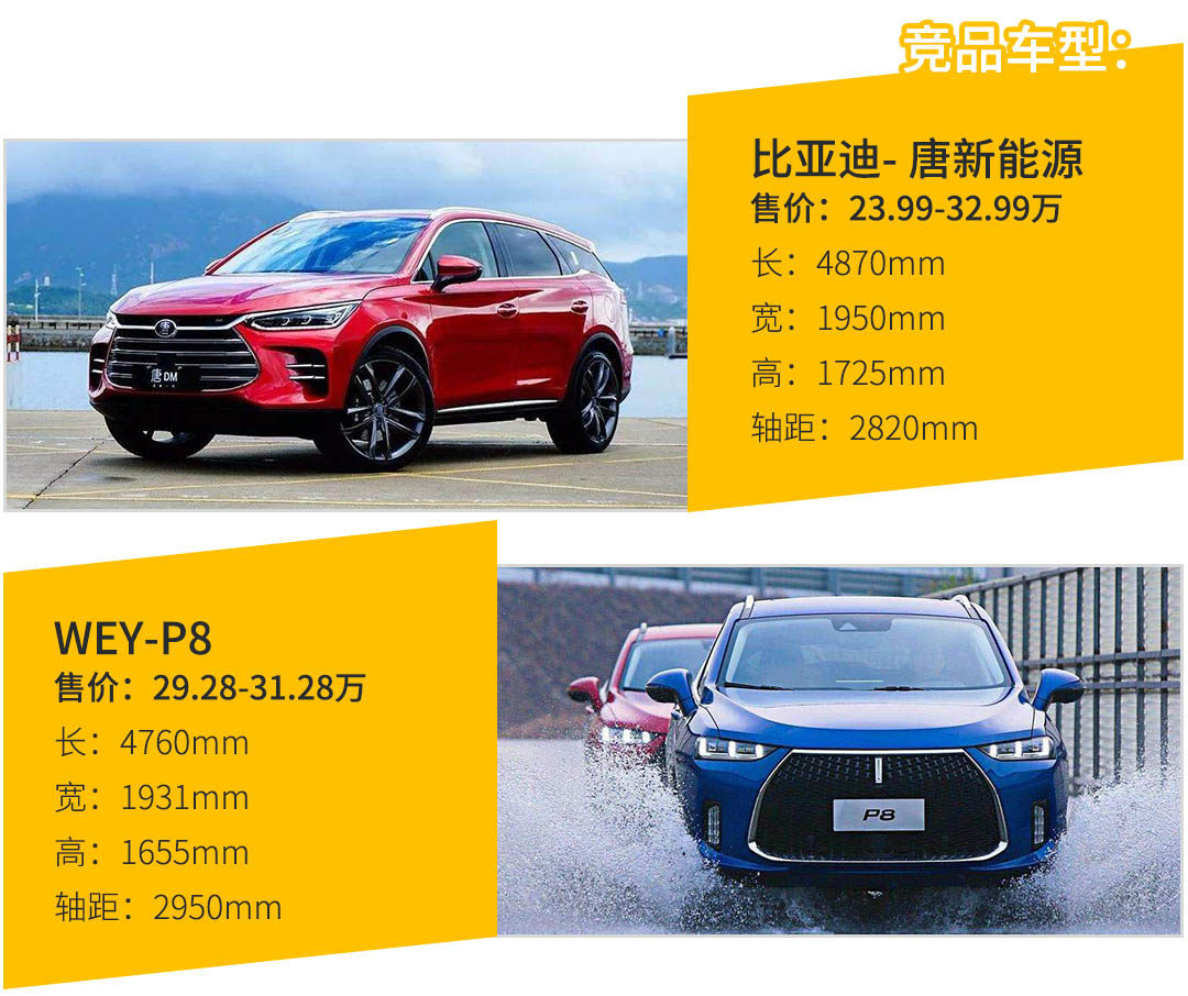 在竞品上,有近期上市的比亚迪唐和WEY的P8。谈起比亚迪,无论是汽油版本还是插电混合式,价格诚意满满。另外,三者的比较,比亚迪的电池性能表现更有优势。而且,在这之前,已经有了良好的市场基础和消费者口碑。不过,相比前面两款车型,领克01似乎要小一个级别。要想获得一定的突破,领克01新能源还得在这新能源模块方面多花费苦心。