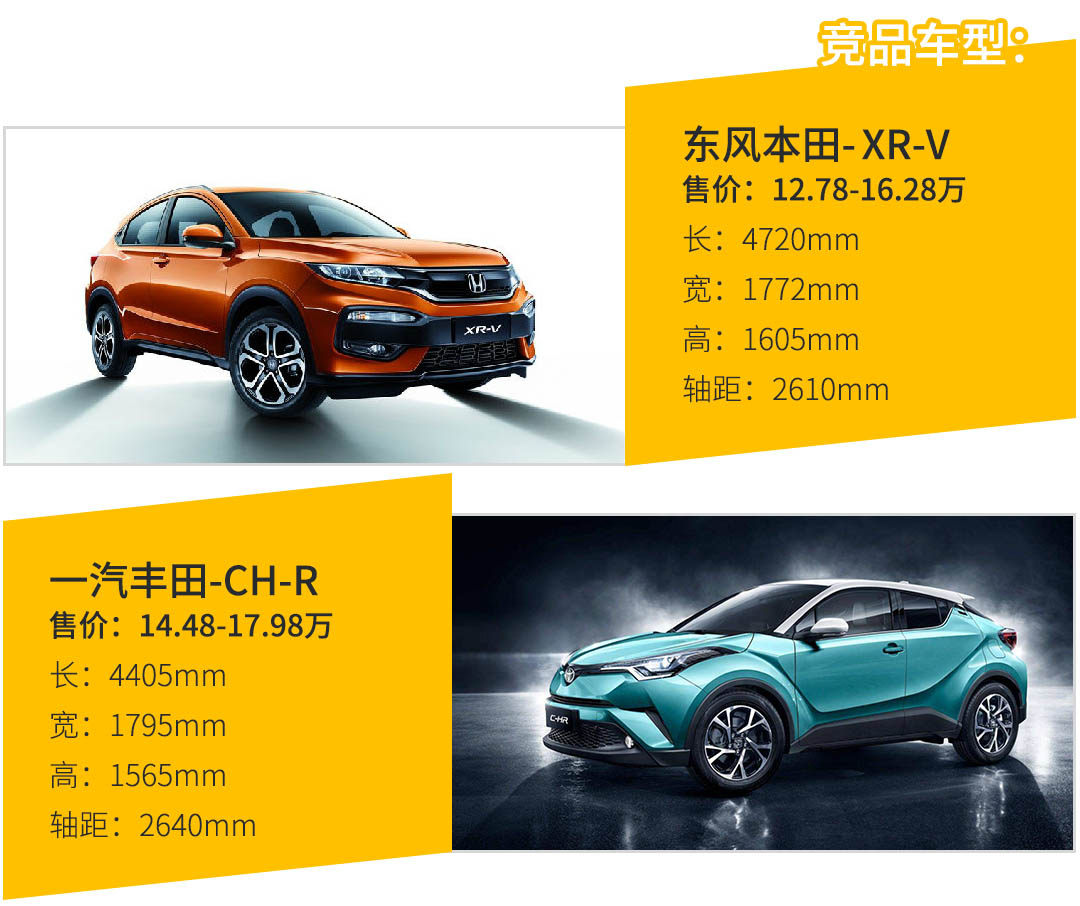 对比起本田缤智和XR-V双星车型,车身尺寸俨然让空间方面有了些优势。对比起丰田的奕泽和CH-R双星车型,在个性化上还是会更多的考虑到普遍消费者的用车需求,比如空间。而在个性与空间上,丰田的两款车型更偏向于个性化,车型适用性没有那么广泛。而对比起柯米克时,品牌属性更占优势。接下来,就是价格的定位了。价格有一定惊喜的话,相信依靠大众的品牌属性,销量自然可观。