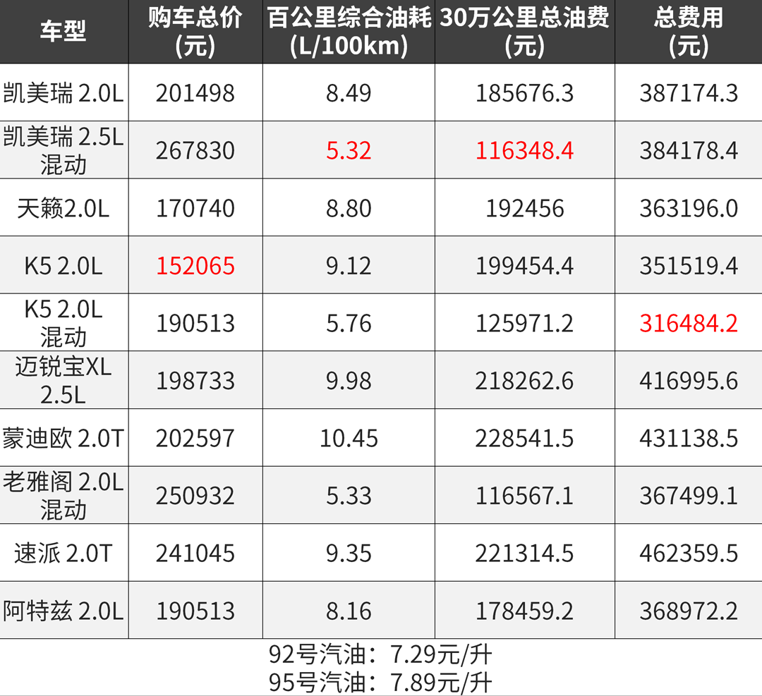 上表可以清晰看到,最适合做专车的是K5 2.0L混动。这款车目前在终端市场可以有3万块钱左右的优惠,所以落地价格只需要20万不到。这个价格能买到一台混动车可以说是相当划算了,更何况油耗还如此的低。
