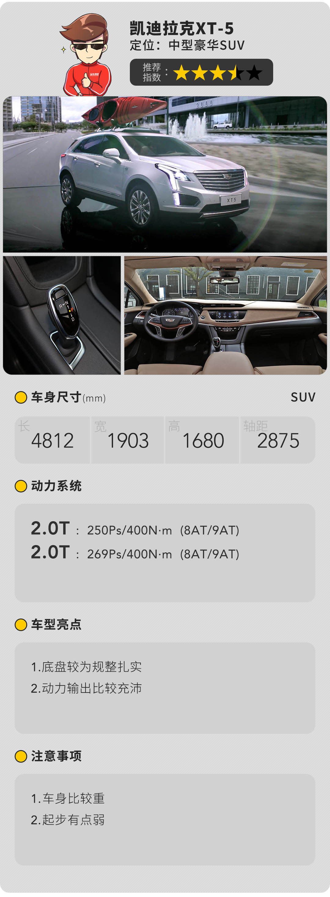 在动力上,XT5搭载了2.0T发动机,有高低功率之分。低功率版本的发动机也能压榨出250马力的动力,动力输出性能要更加优秀一些,但在油耗经济上就不能够很好的起到兼顾的作用。9AT变速箱的匹配,为优秀的动态性能表现锦上添花。同样,在驱动方式上,也分为两驱和四驱,在选择性上有更多的参考。