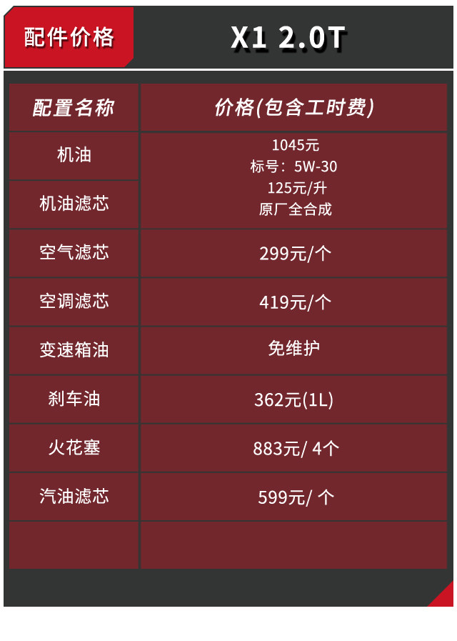 宝马的保养政策是配件和工时费合并计算的,并且可以从宝马官方网站详细查询到各个车型对应公里数的保养项目及价格。