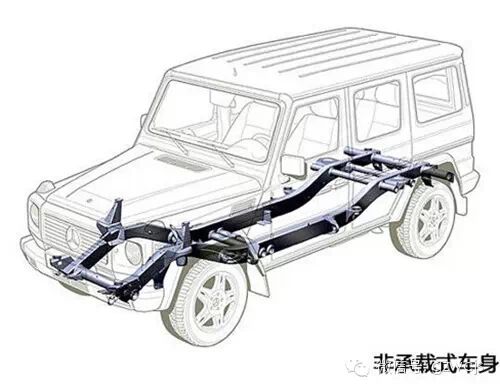 非承载式车身简介:非承载式车身车型具有刚性车架,又称底盘大梁架。车身本体悬置于车架上,用弹性元件联接。车架的振动通过弹性元件传到车身上,大部分振动被减弱或消除,发生碰撞时车架能吸收大部分冲击力,颠簸路面行驶时对车身冲击力极小,因此车厢变形小,平稳性和安全性很好,车厢内噪音低。