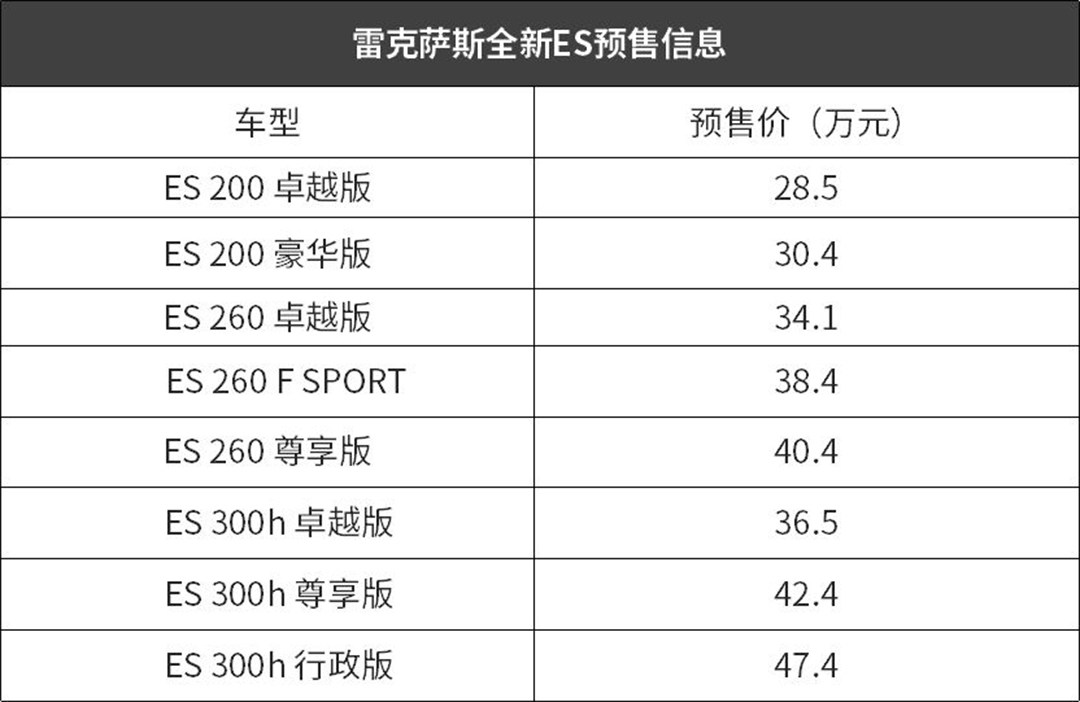 预售28.5-47.4万,雷克萨斯全新ES或本月26日上市