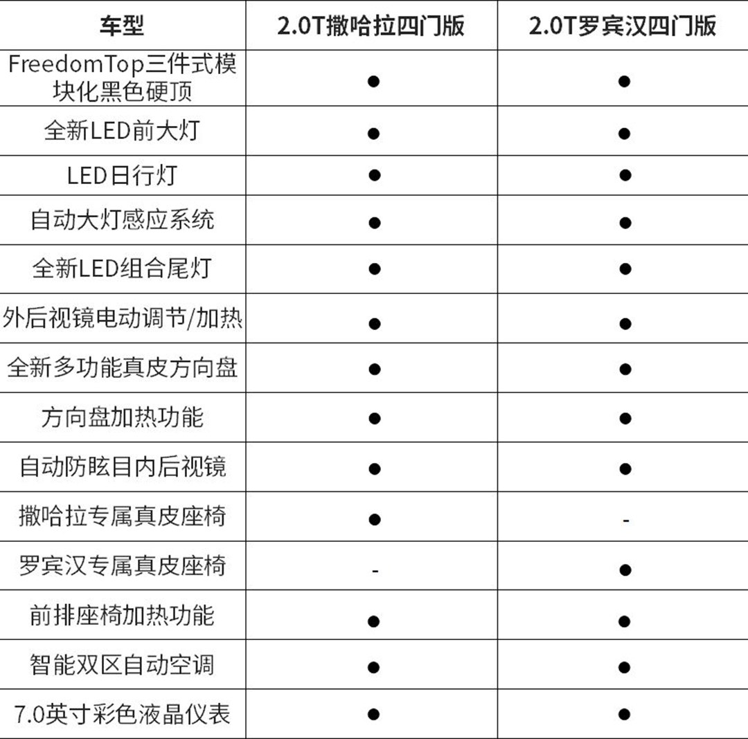 日前,我们从相关渠道获得了一组JEEP全新牧马人2.0T四门版车型的配置清单,新车或将于本月23日正式上市。全新牧马人车身尺寸为4882×1894×1838(撒哈拉)/1848(罗宾汉)mm,轴距为3008mm。动力方面,全新牧马人将搭载2.0T直列四缸涡轮增压直喷发动机,其最大功率为195.4kW/5250rpm,最大扭矩为400Nm/3000rpm,匹配8速手自一体变速箱。悬架和底盘方面,新车前后桥均采用带有自适应减震器和稳定杆的多连杆整体桥悬挂,同时标配陡坡缓降功能,两车均带四驱系统。全新换代牧马人在不丧失越野性能的同时增添更多舒适性配置,无疑将进一步提升其竞争力。