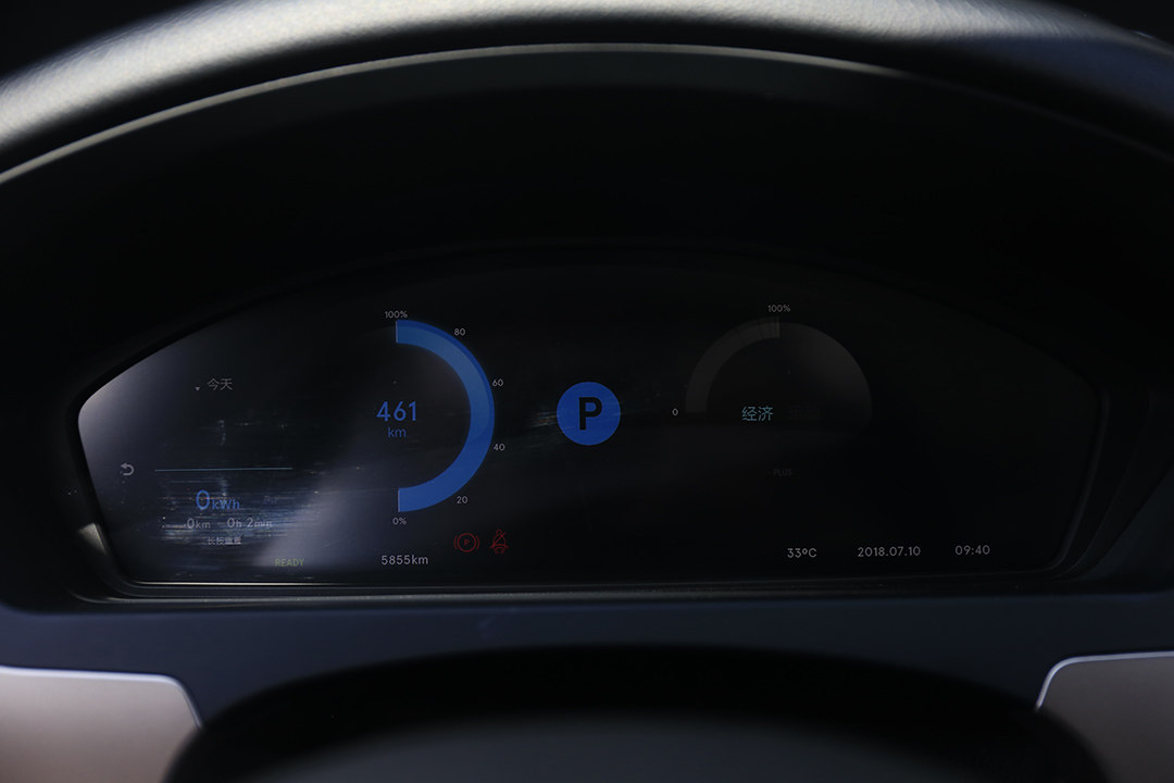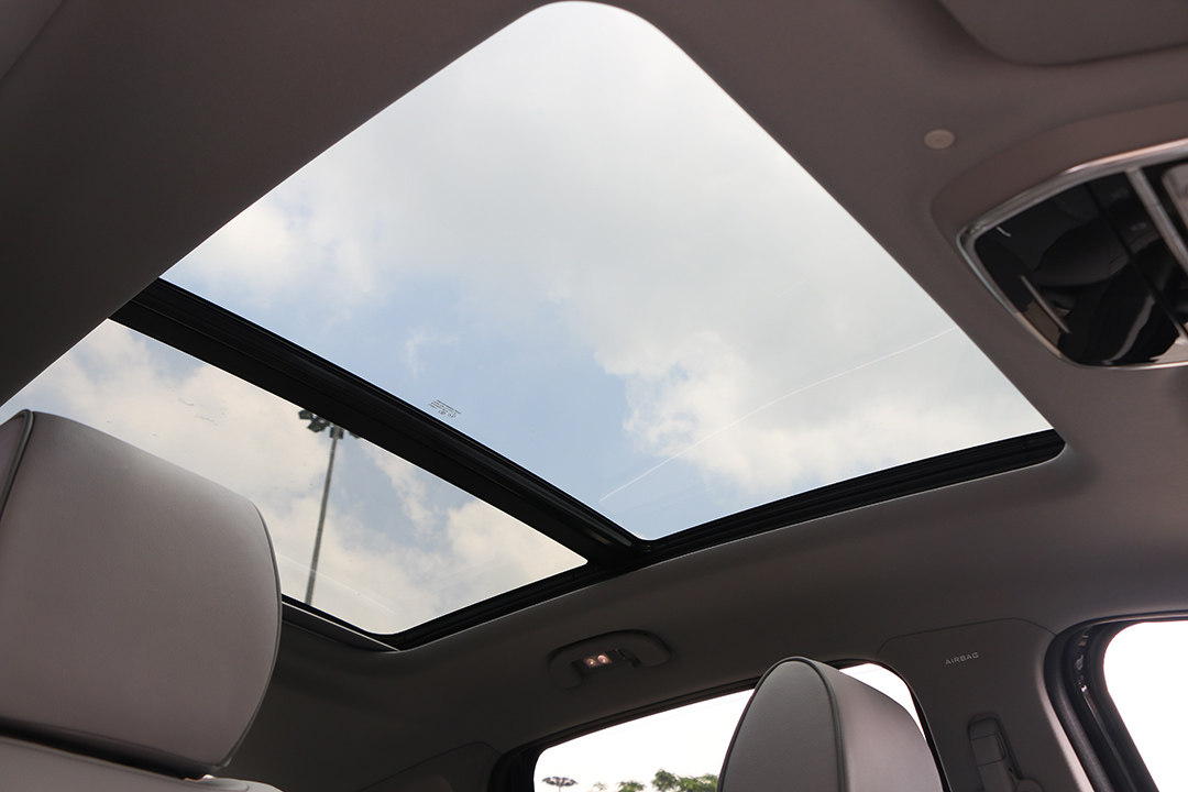 由于大部分电池都被安放在车底,因此车厢内地板高度距离地稍高,也因为这个原因,后排头部空间稍显局促,以175cm的体验者来说,头部空间不足一拳,稍显局促,而大尺寸全景天窗在一定程度上弥补了这一不足。