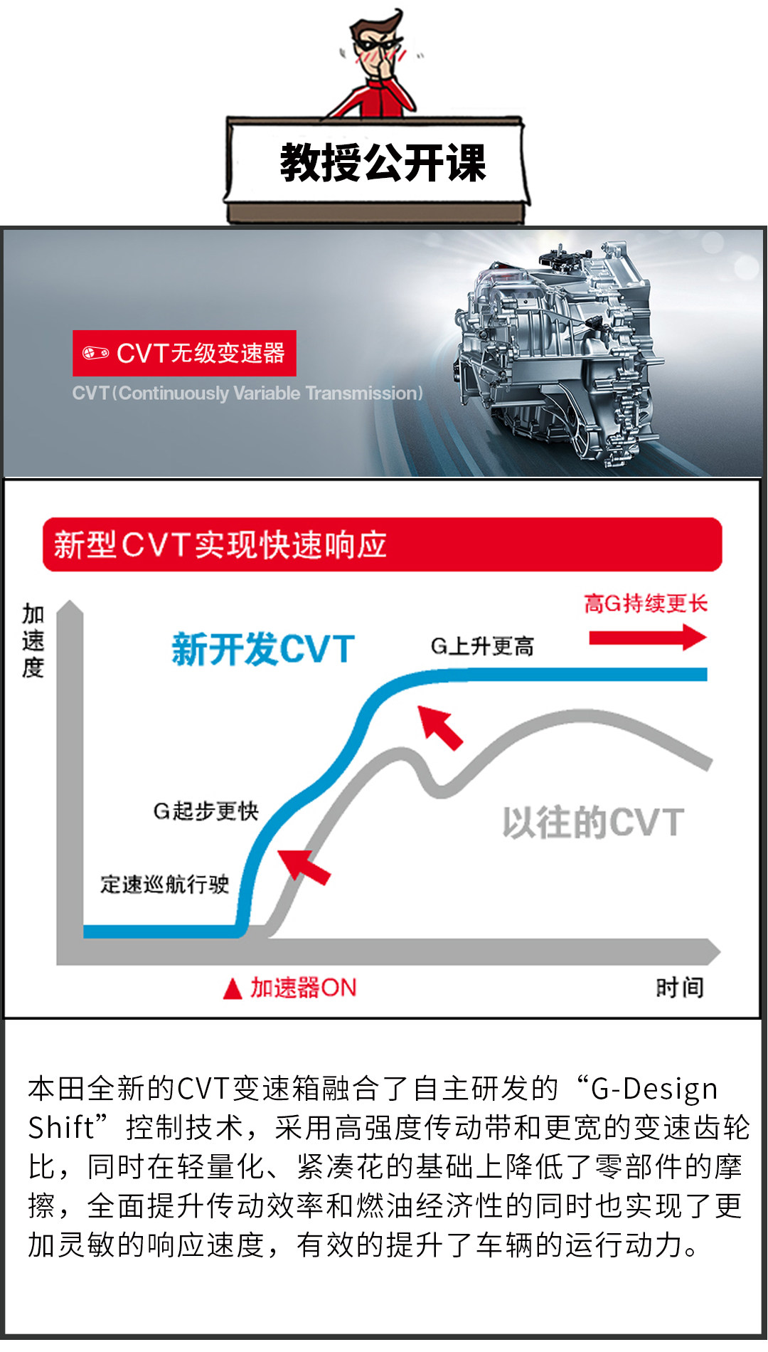 相信在很多人的眼中,换代运动后的雅阁仍匹配CVT变速箱实在有点浪费,然而在教授看来,匹配CVT变速箱的雅阁动力加速还是很不错的,虽然底盘的调校有些偏硬,路感表现比较突出,对路面较大的振动处理得也不是很彻底。不过,整体的来看,雅阁动力有底气、隔音、空间感表现都还不错,加上换挡平顺、省油的CVT变速箱,性价比还是值得认可的。