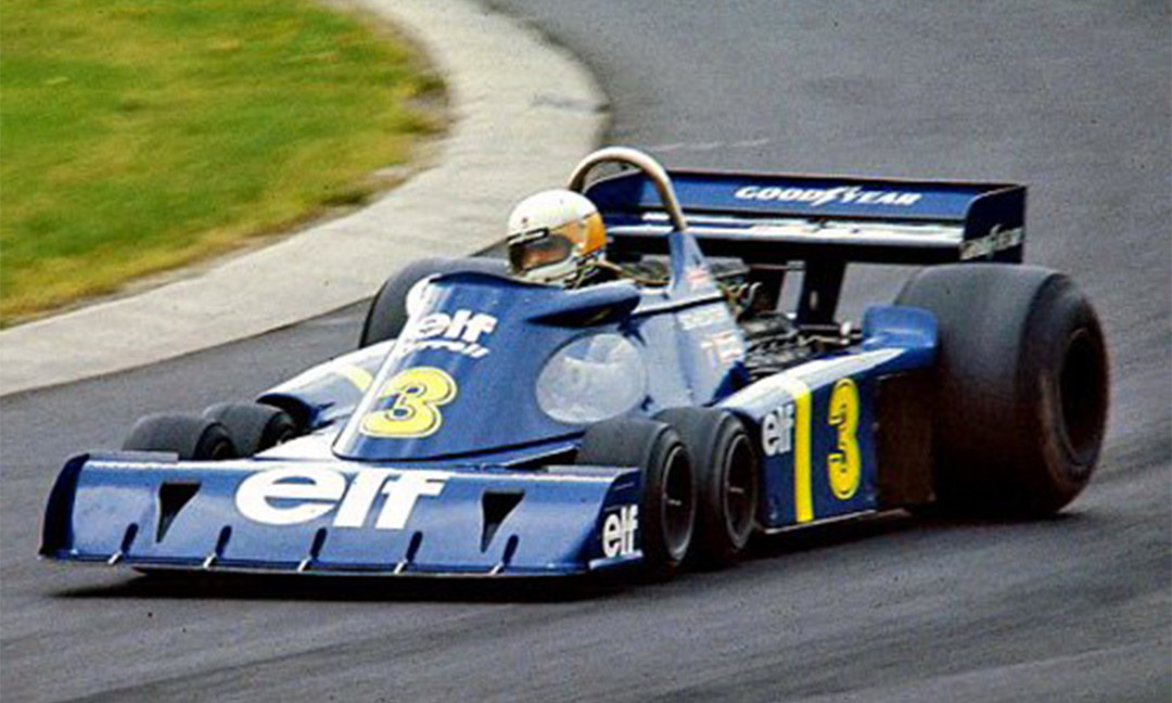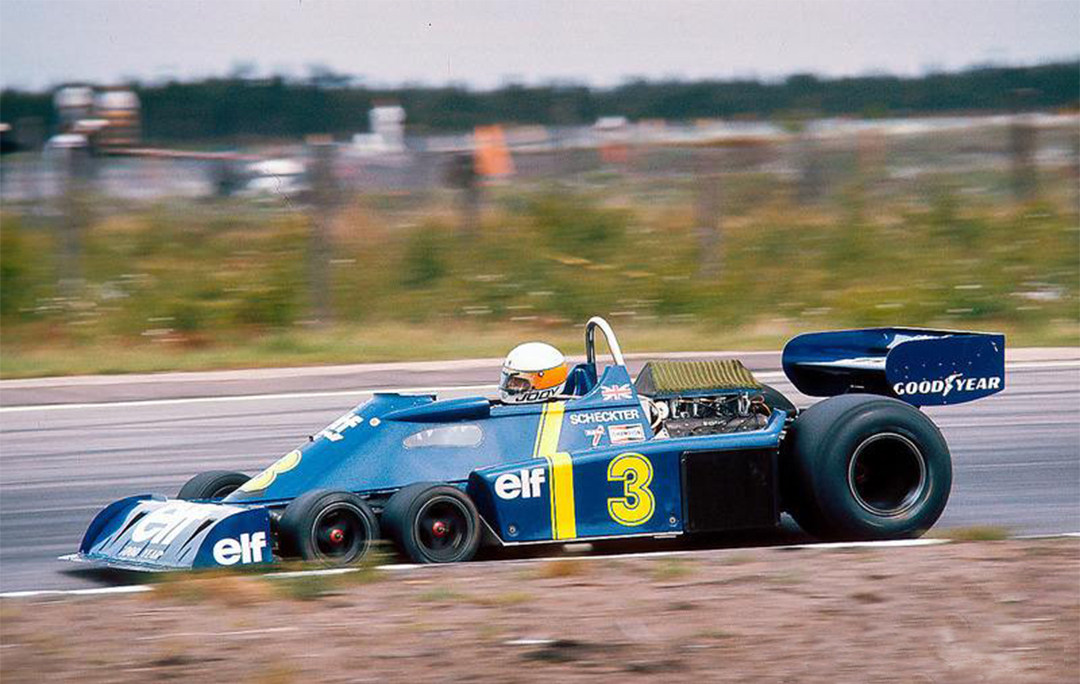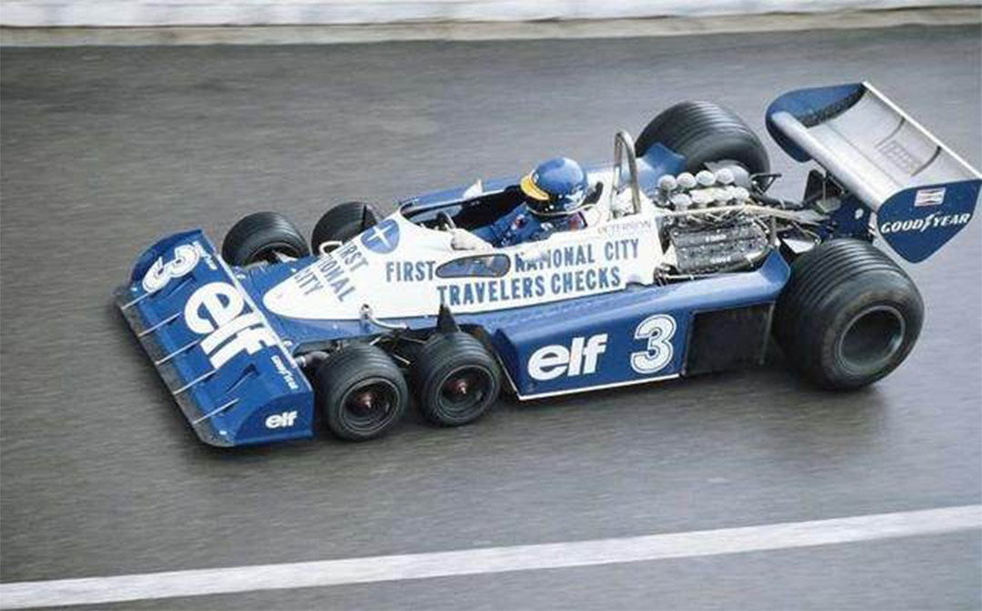 六轮F1最早出现在1976年的西班牙大奖赛中,该车拥有双前轴-四轮转向的独特设计。泰利尔P34赛车总共参加过30场F1大奖赛,赢得过1次杆位、1次冠军,以及3次最快圈速纪录,算是非常不错!它这样设计最大的特点就在于四个小轮代替两个大轮,减少了原先两个较大前轮引起的升力,增加了“前轮”的接地面积,同时提高制动性。在泰利尔P34出现之后,又相继出现了March2-4-0,1977款法拉利312T6和威廉姆斯 (FW07D and FW08B)等六轮车型,但最终大会禁止了六轮F1赛车参赛。