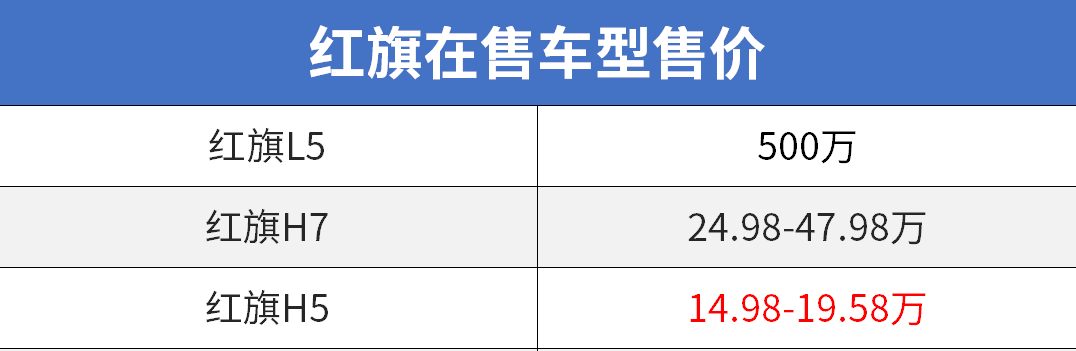 作为中国第一豪车品牌,红旗车型的价格一直都是高高在上的,除了售价500万的L5之外,红旗另一款车型H7价格也并不亲民,24.98万的起售价使得H7更多地是政府采购用途。
