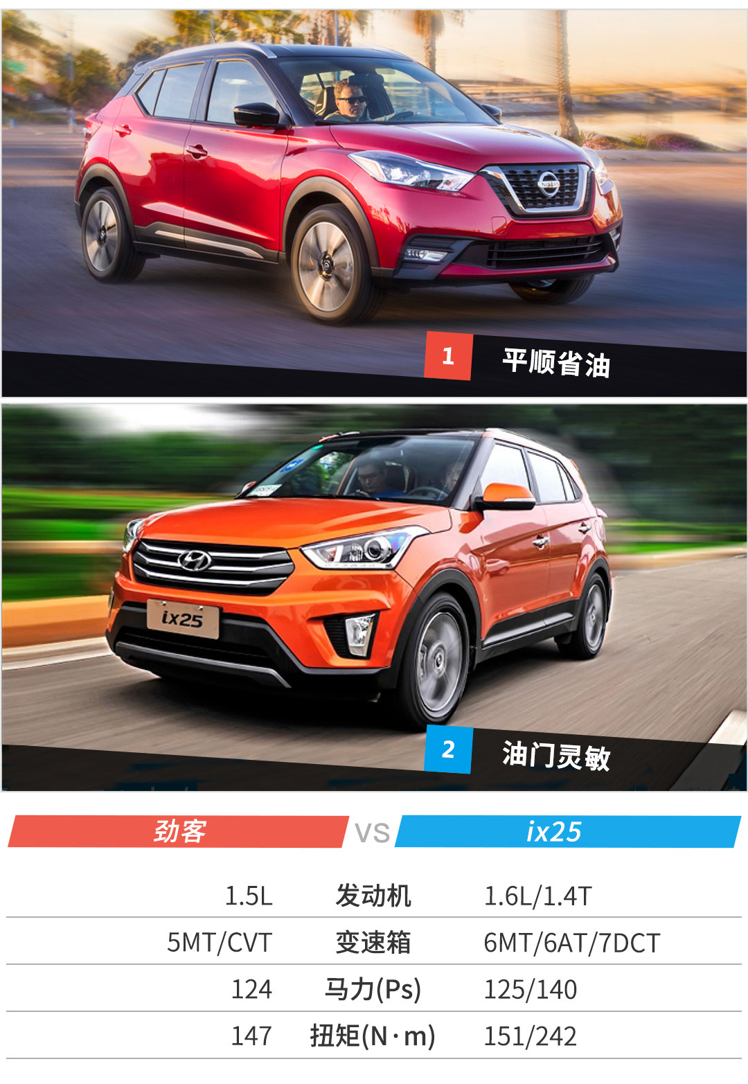最近教授在后台收到许多关于日产劲客和现代ix25的选车问题,看来大家对这种小型SUV还是比较感兴趣的,所以教授决定对这两款车型做一个详细对比,看看这两款车型到底怎么选?