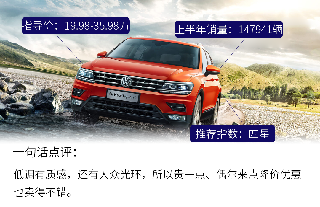 购买建议:论产品力,途观L的确是没什么好挑剔的,可同时也没什么特别突出的亮点。如果你觉得拿2、30万买一台大众没什么问题的,那教授会给你推荐豪华版的途观L,配置会更丰富一些,而且目前大概会有1.5万元的终端优惠,价格上的压力也会减轻不少。