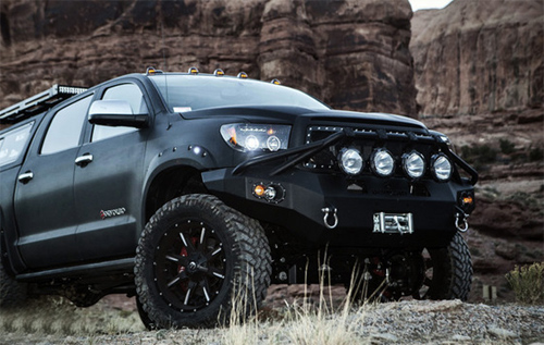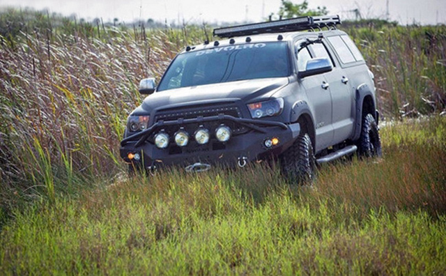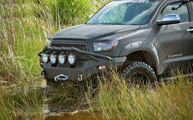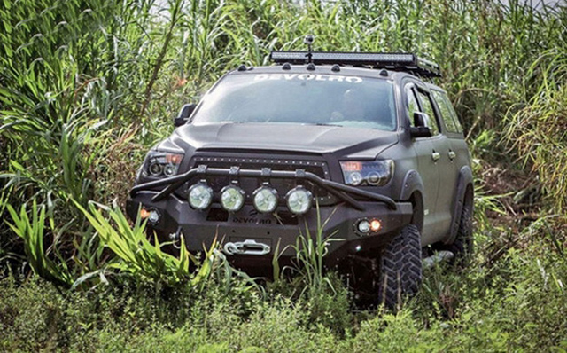 来自迈阿密的改装厂Devolro将丰田坦途变成了一台越野魔兽,俗话说“不成魔不成活”,那么它需要get什么技能呢,底盘悬架升至18毫米、37英寸越野轮胎、前后差速器、绞盘以及一些额外的组件让其外面看着非常粗狂,动力上搭载5。5升V8发动机,功率提升到505马力,当然你要是不满足这性能表现,还是可以再次经过升级,使用丰田性能部门研发的增压器,功率可达525马力。