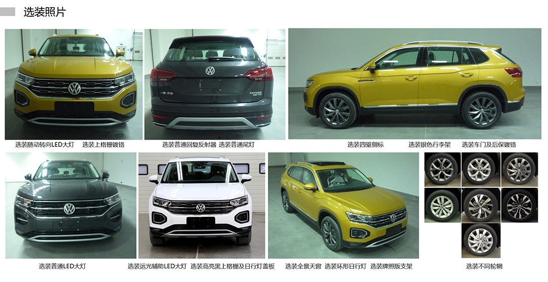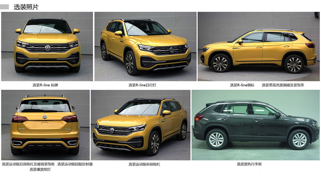 日前,我们获得一组一汽-大众TAYRON探荣申报图,从申报图可以看出,新车前脸雾灯处根据车型不同将提供环形LED日行灯和条形LED日行灯可选,此外其还将提供R-Line车型可供选择。