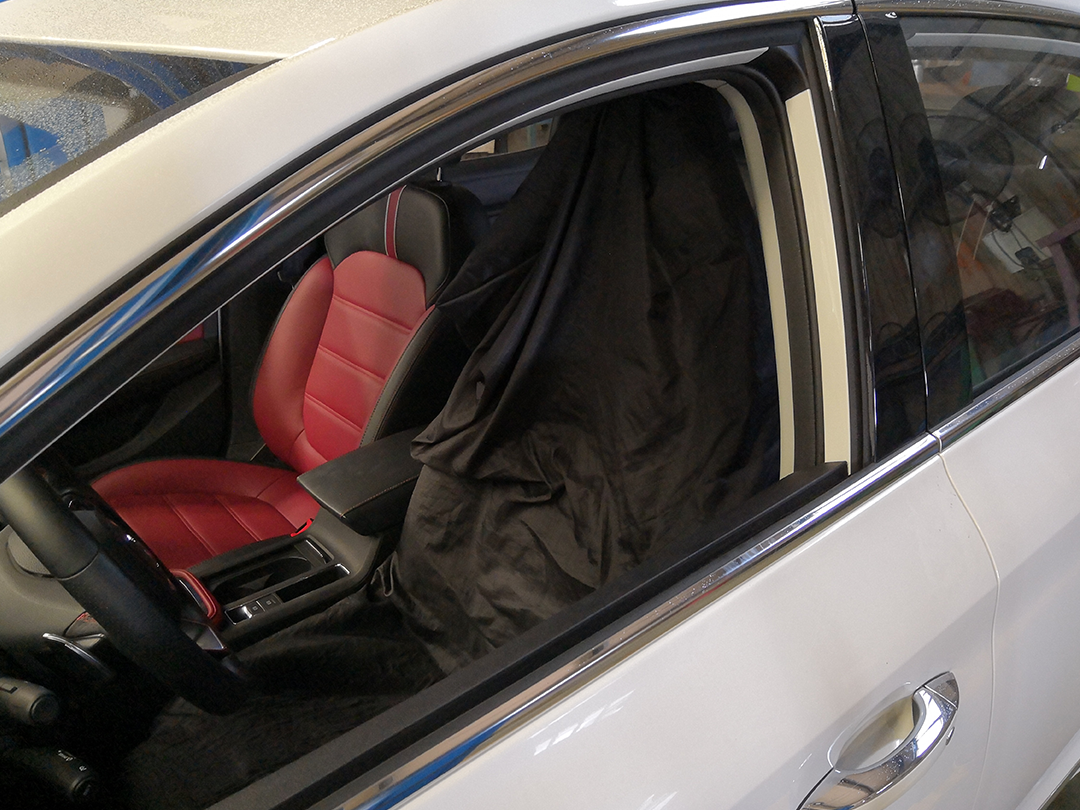 开好单子以后,服务人员会围着汽车做一个初步检查,然后会拿塑料布盖着主驾驶座,同时也会给主驾驶座放置一个纸脚垫,这些小细节都做得相当贴心。
