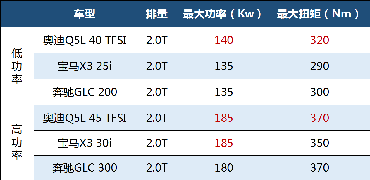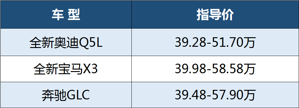 奥迪Q5的高功率车型的指导价仅为46万多,奔驰GLC和宝马X3则要接近50万;此外,奥迪Q5L的配置也十分厚道,主动安全系统为全系标配,次低配就配备了全液晶仪表、矩阵式LED大灯等酷炫黑科技配置,确实超值。