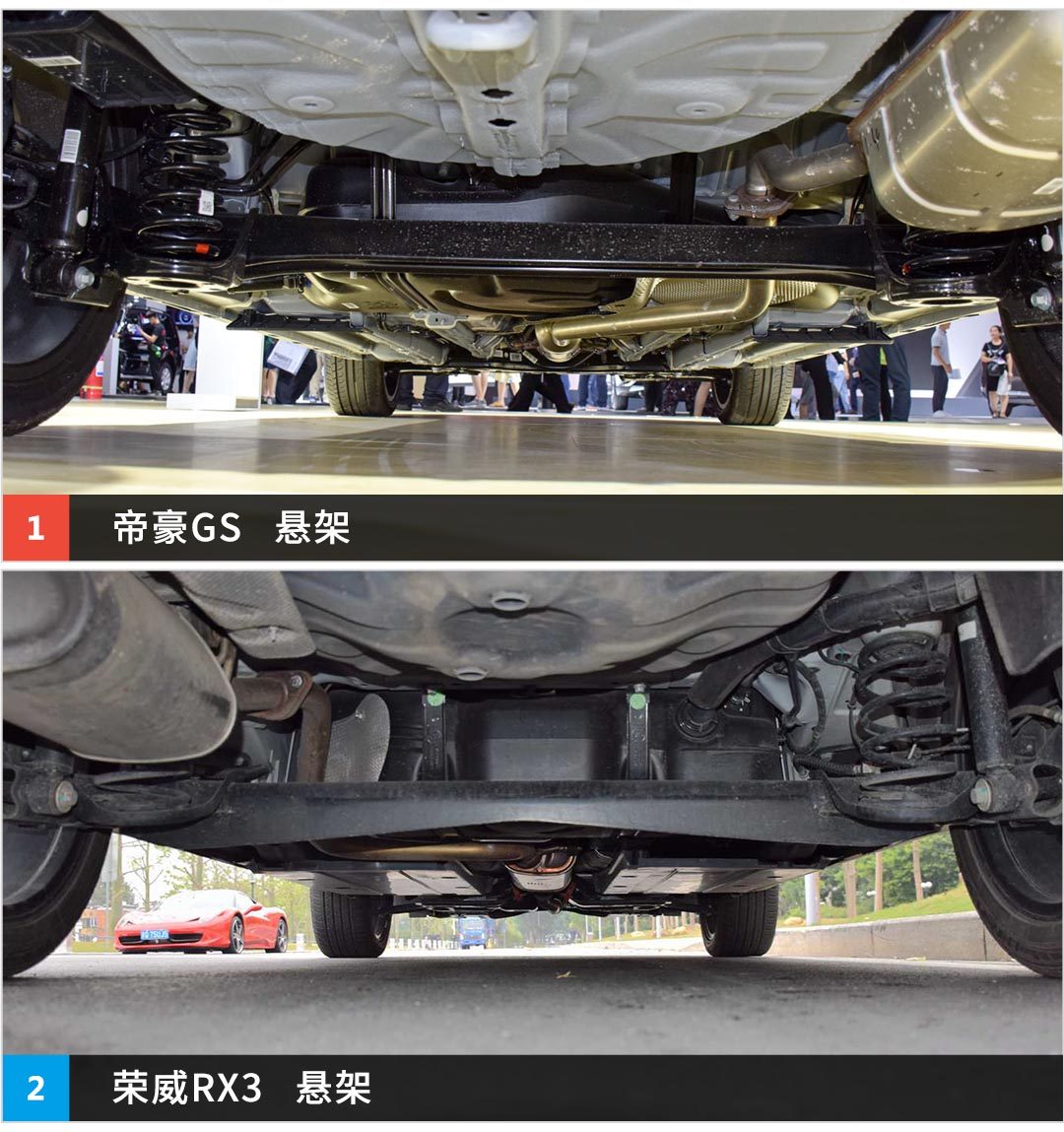 帝豪GS的悬架有一定的厚重感,保证舒适性,但是后排在经过减速带的时候会有点颠。而荣威RX3的悬架调教软硬适中,在经过路面时,细碎振动过滤得干净、利落并且有着不错的“韧性”,有一定的高级感。