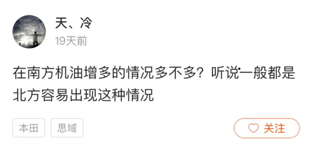 2、南方机油增多的情况多不多?听说一般都是北方容易出现这种情况。