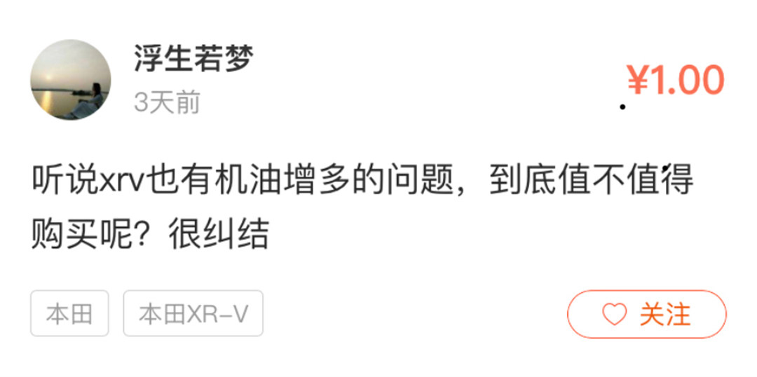3、听说XRV也有机油增多的问题,到底值不值得买。
