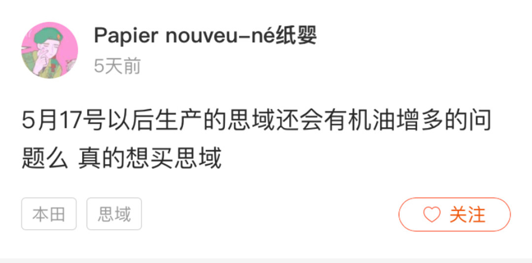 5、5月17号以后生产的思域还有机油增多的问题吗?真的想买思域。