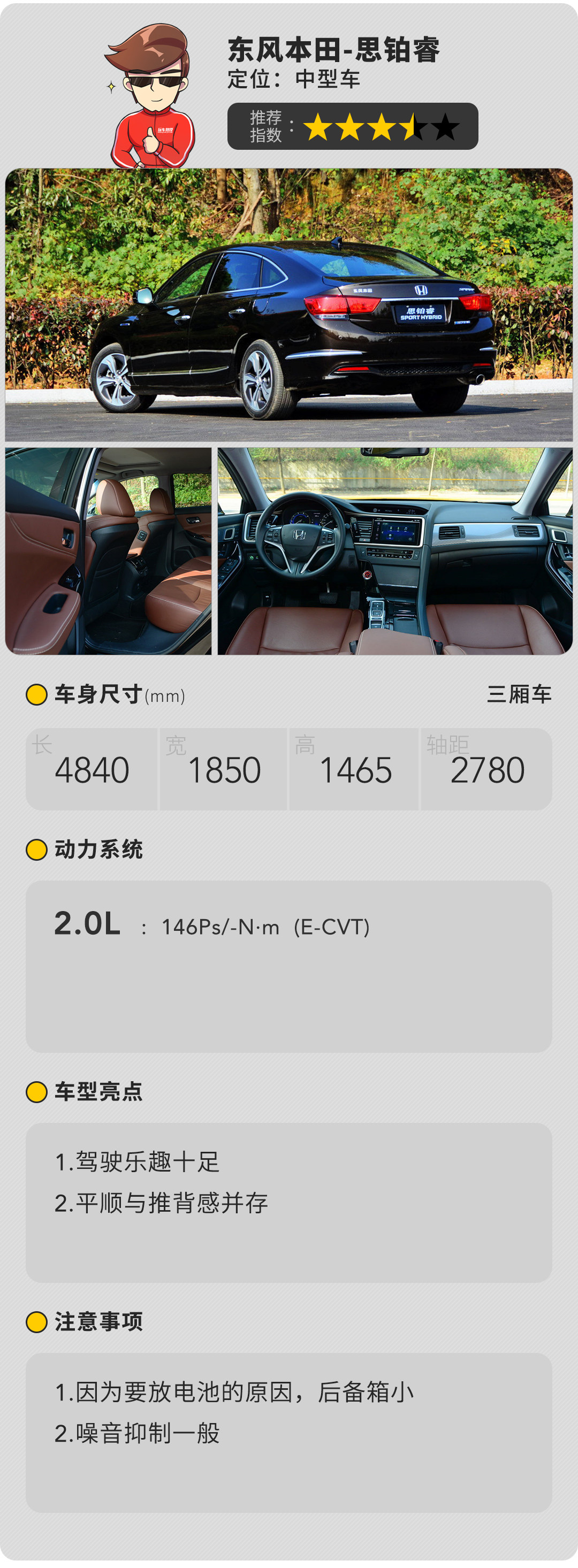 尽管丰田的混动技术深得人心,但整套系统复杂且难解释,本田这套i-MMD的原理就直观很多了,但是它们有一个共同的特点,就是取消传统的变速箱。从原理上看,思铂睿混动版是以电动机驱动为主,纯电模式下车内噪音非常小,不过发动机启动的那一下还是能比较明显感知到。至于为啥不推荐雅阁?思铂睿外观和内饰更加运动年轻不油腻啊。