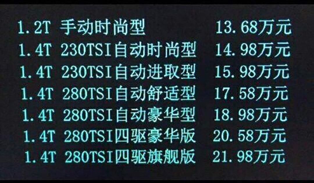 疑似一汽大众探歌售价曝光