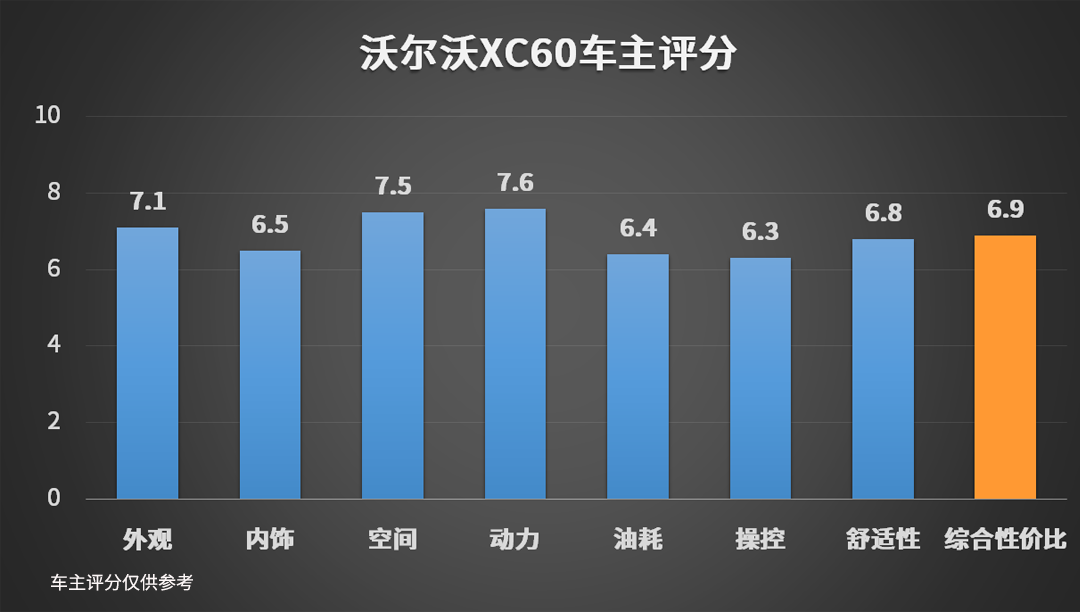 说了这么说,想必各位看官对于这款沃尔沃XC60也有一定的了解了,健康、舒适、安全可以作为它的代名词。不过消费者买车当然还是要讲究性价比,我们从评分中不难发现它的性价比并不算很高,为什么?