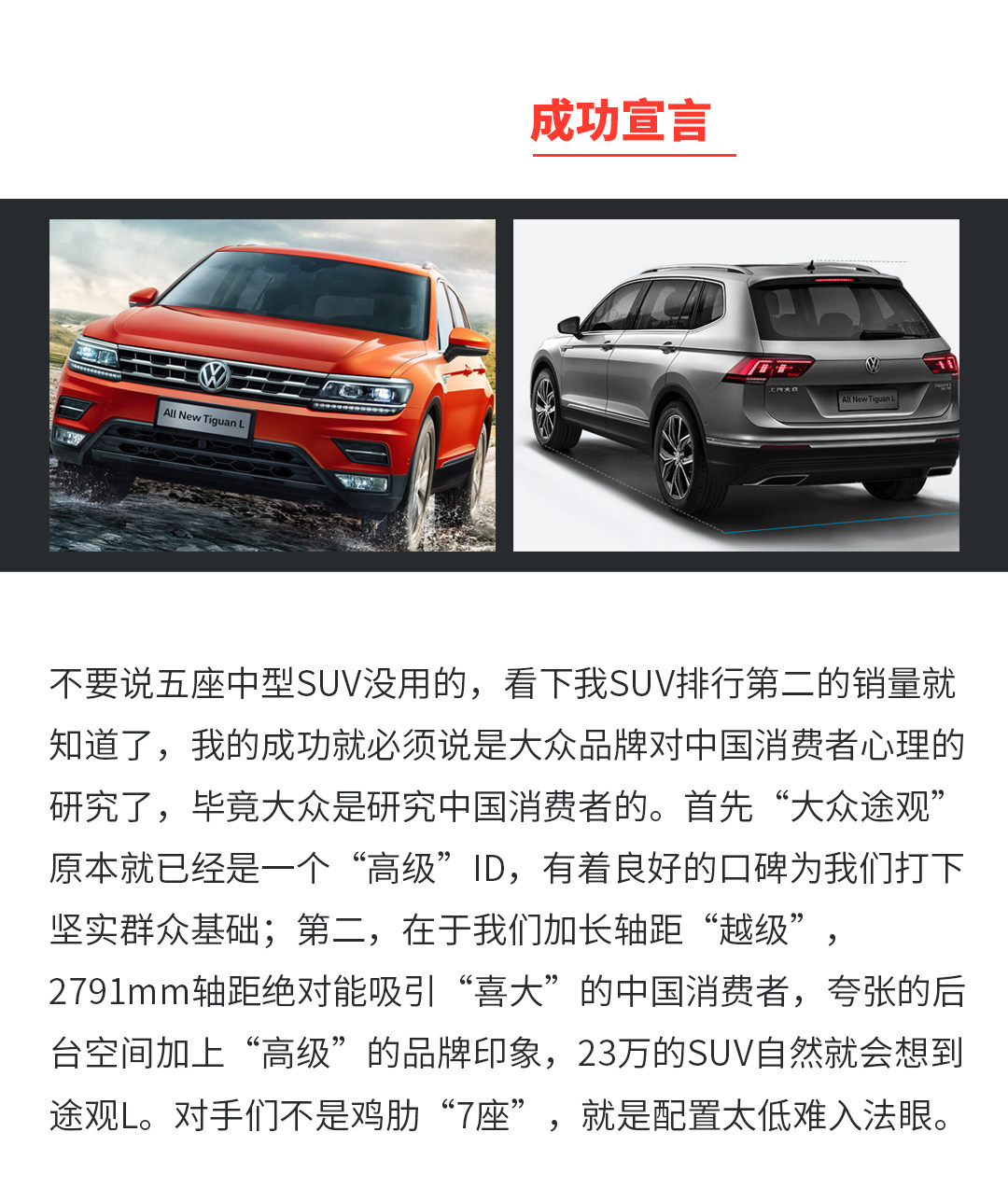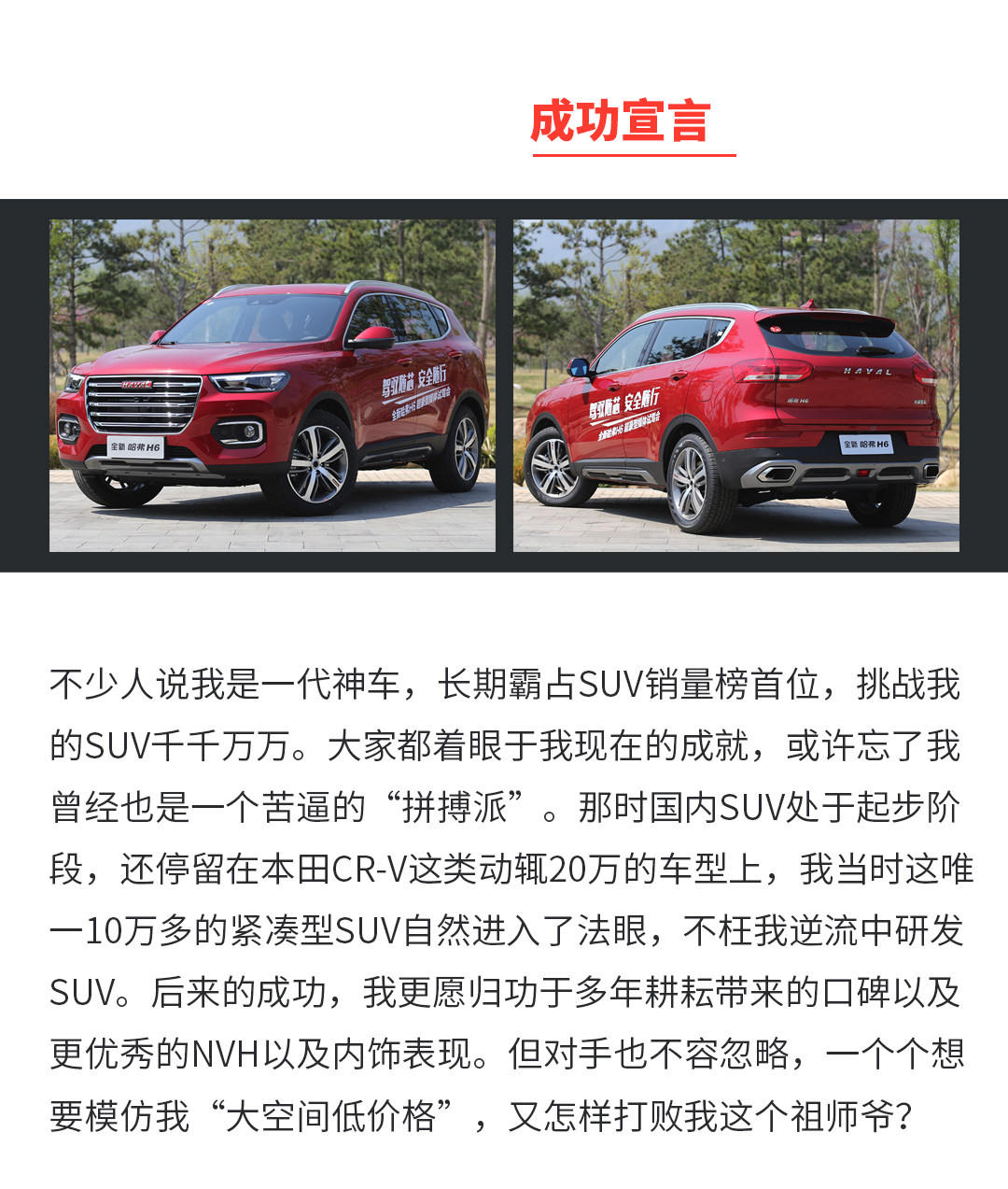 从它们的成功,教授觉得这个SUV市场能够被颠覆的可能依然很大,哈弗H6完美吗?日产奇骏完美吗?大众途观L也是完美吗?很明显答案是“并不”。它们均不惊艳,它们的成功可以说是“猪对手”们的反衬,所以教授希望未来能看到更多更强势SUV车型的诞生。但首先,模式要“反常规”,就如哈弗H6的诸多对手一般,要以哈弗H6成功的方式去打败H6,这根本是痴人说梦,哈弗成功其实不在于“价廉物美”,不在乎“心理琢磨透彻”,反而是对市场的颠覆,它成功将紧凑型SUV以十多万价格带到消费者面前,这种颠覆真是消费者所需要的。