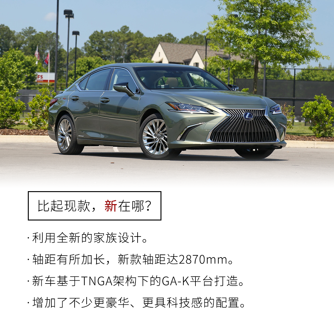 全新一代雷克萨斯ES的主要在外观设计、技术平台,及配置方面做了进一步的提升。全新的设计语言让新ES看起来更加运动、激进,而内饰氛围保持一贯的豪华档次感,细节处更是处理得精致。而增加的轴距令车内的乘坐空间更宽敞,特别是后排空间。再加上从28.50-47.40万元的预售价格来看,它的价格具有比较大的优势,口碑本来就不错的ES,相信换代上市后能成为一款受欢迎的豪华品牌轿车。