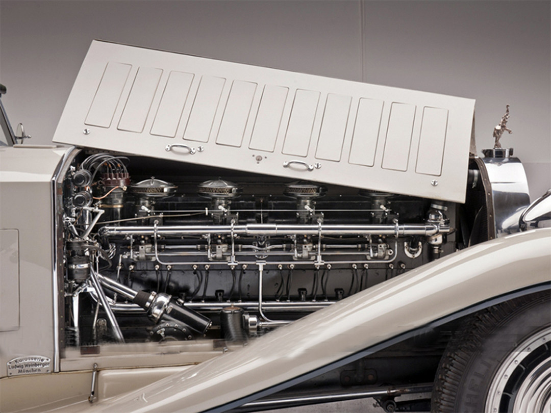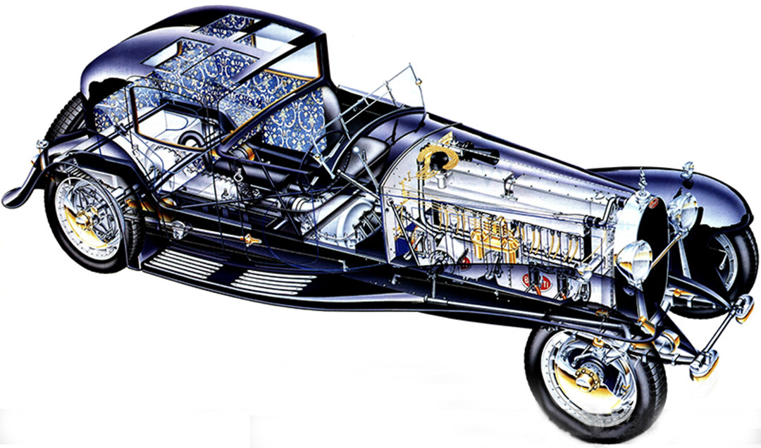 这辆拥有6.4米长、轴距为4.3米的Type 41 Royale(1927-1933)庞然巨兽便是布加迪对于豪车的答案,它拥有一副彷如艺术品的12.7L的八缸引擎,能迸发300匹的峰值马力、最高时速200km/h,在当时民用豪华车上并没有如车强悍的产品,当时制造它的目的就是比劳斯莱斯车型还要好。 但是,很可惜当时是经济大萧条时期,加上它的售价是当时最贵的劳斯莱斯车型三倍,所以仅有6辆被生产出来,但也因为这辆车奠定了布加迪豪华超跑的调性。