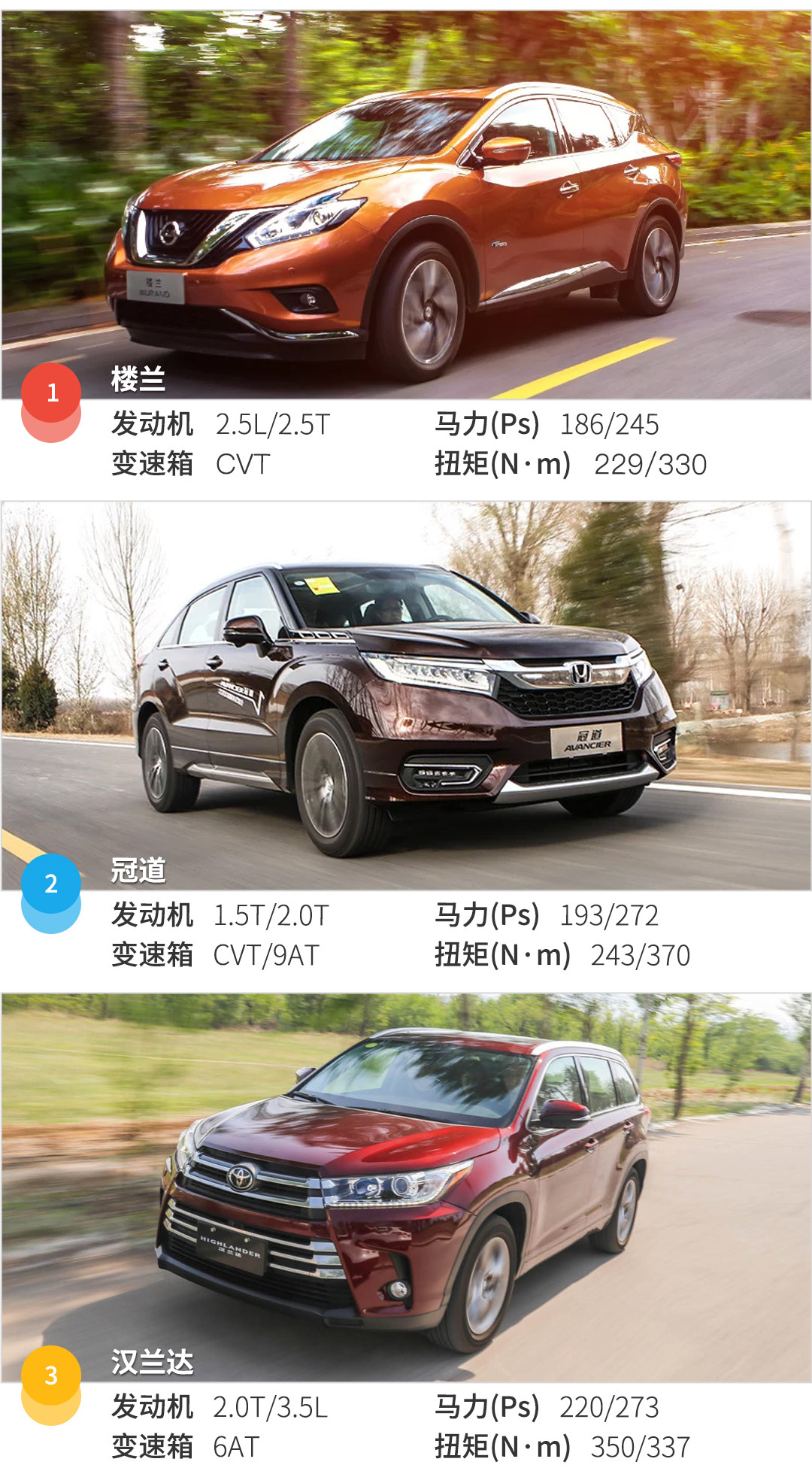 如果问在中型SUV中,卖得最好的三款日系车是什么,那必定会是日系三大巨头旗下的楼兰、冠道、汉兰达。