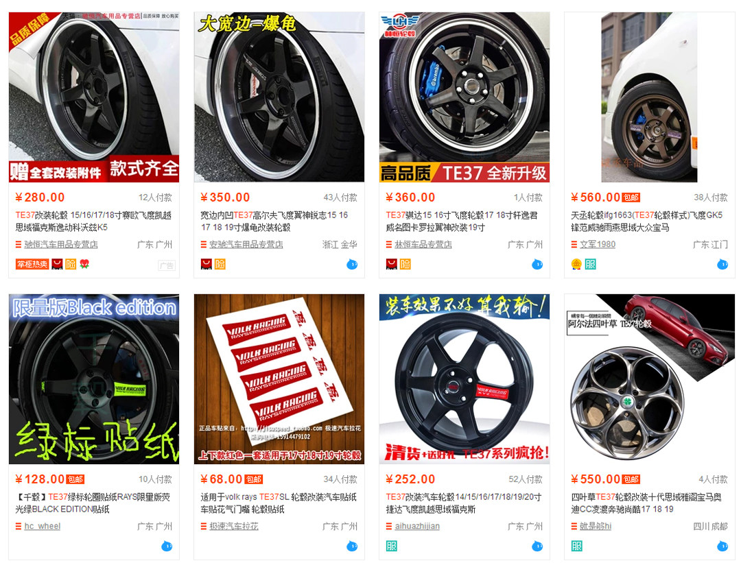 例如rays TE37这个经典轮毂为例,网上350元左右就能交易,而正品轮毂19寸大概在1万大几左右,这之间的差距显而易见,正是由于其高昂的售价,使得山寨商家有机可乘。