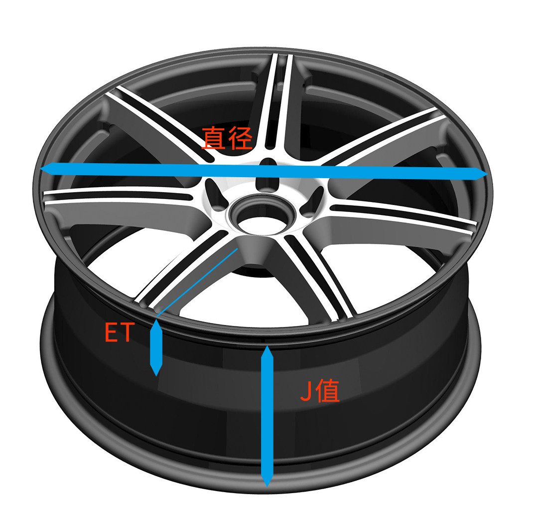 J值是指轮毂的宽度,这里的宽度是指能够装下轮胎的尺寸,一般一个J值能够对应3个宽度的轮胎,例如7.5J的轮毂能够使用215-235mm的轮胎。ET指的是辐条中央的螺丝孔位离轮毂中线的距离,以毫米为单位。Hellaflush改装以及VIP风格都喜欢用大负值轮毂来凸显宽体的效果。直径就很清晰了,就是轮毂的直径。主流有17,18,19寸等,以英寸为单位。