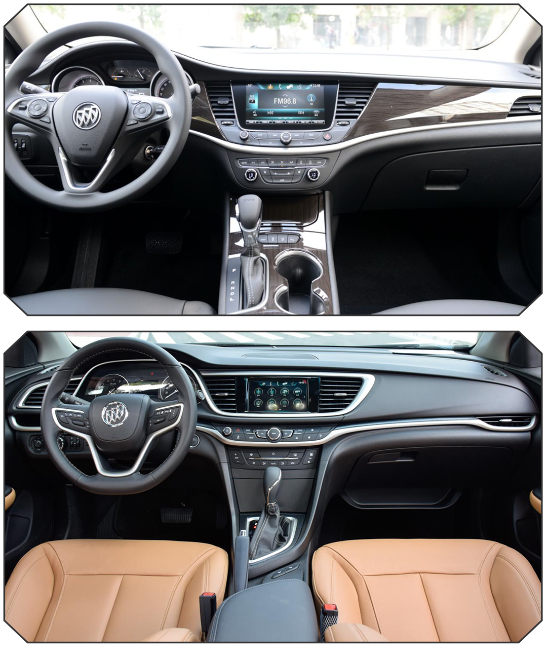 既然英朗换用了三缸机,相信会有不少人选择威朗。威朗的外形尽管与英朗相仿,但是在一些细节处理上比英朗要更细致,例如下唇两边的C形镀铬装饰。内饰的区别就更明显了,威朗的木纹装饰对于精致感的提升明显。