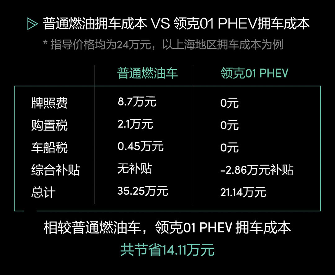 还记得在6月底的2018领克春夏发布会上,领克汽车公布了领克01 PHEV的预售价格区间为24万-27万元。除了预售价值得关注,现场举例说明的领克01 PHEV拥车成本,也令教授印象深刻。在如今一线城市牌照难拿、油费贵、中国新能源汽车市场初具规模的时代下,PHEV(插电式混合动力)车型成了一个很不错的选择。但这是不是一种妥协呢?
