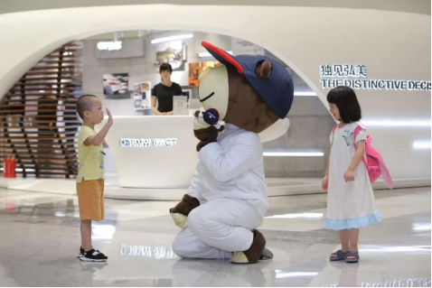 现场BMW宝马熊与客户拍照,随机赠送精美礼品。