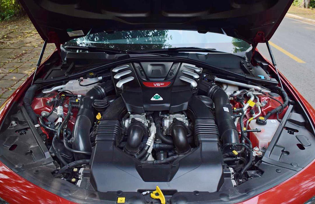 打开发动机盖,查看整体情况,整个引擎舱应该保持干净,无油液的痕迹,没有明显的灰尘积累。