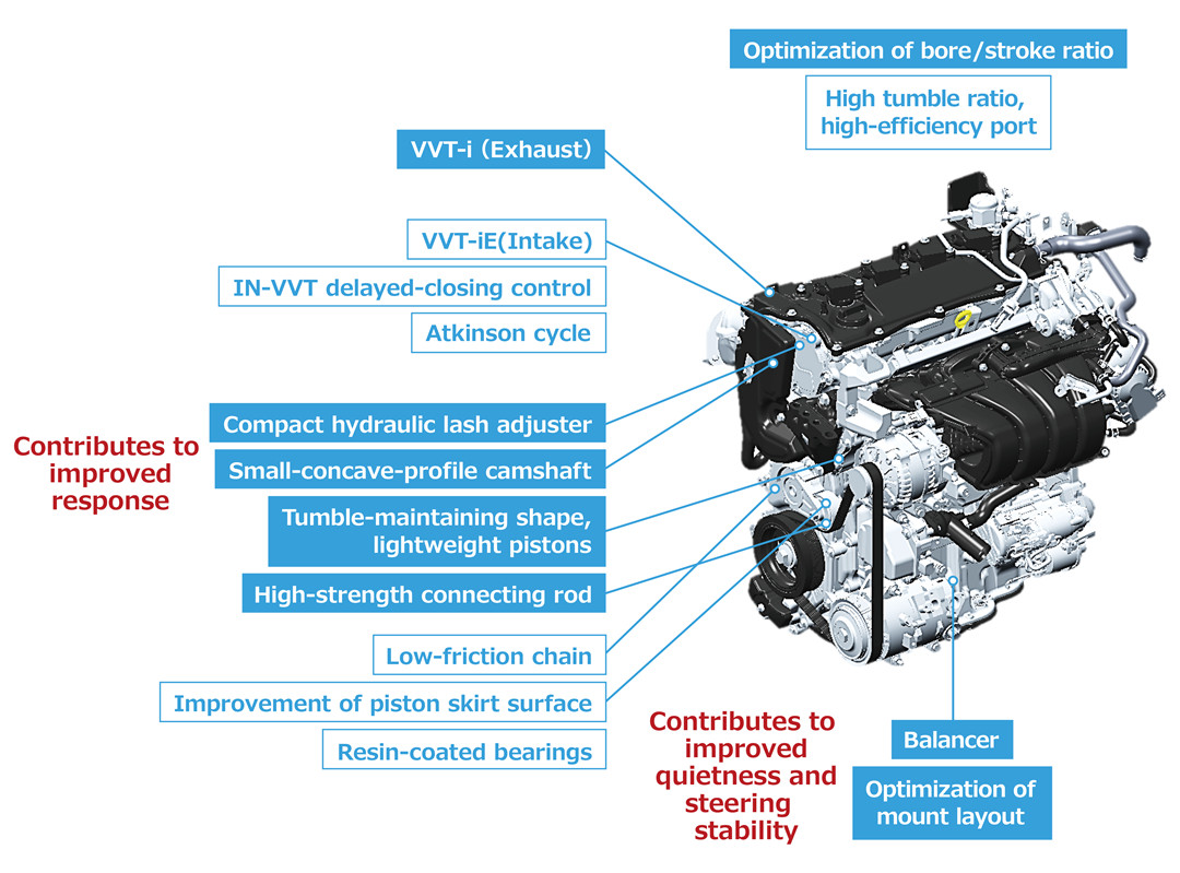 其实高压缩比引擎在前期的丰田发动机中就已经出现。为了达到节能减排的目的,丰田就曾经在早期的 Prius 上用上高压缩比引擎,当时初代Prius 所搭载的1NZ-FXE汽油机压缩比已经达到13:1,而后丰田更是将其压缩比丧心病狂的提升至13.4:1!在 Prius 上尝到甜头的丰田就开始把高压缩比引擎的概念继续导入旗下的其他的引擎,例如在东南亚投放的 Yaris、Vios、Myvi 采用的引擎压缩比均达到了11.5:1,七代的凯美瑞2.0L压缩比也达到了12.7:1。再例如在日本投放的 Vitz、Trezia 采用的1.3L自吸发动机和 Corolla Axio , Spade , Sienta 和 Yaris 上采用的1.5L的压缩比都达到了13.5:1。