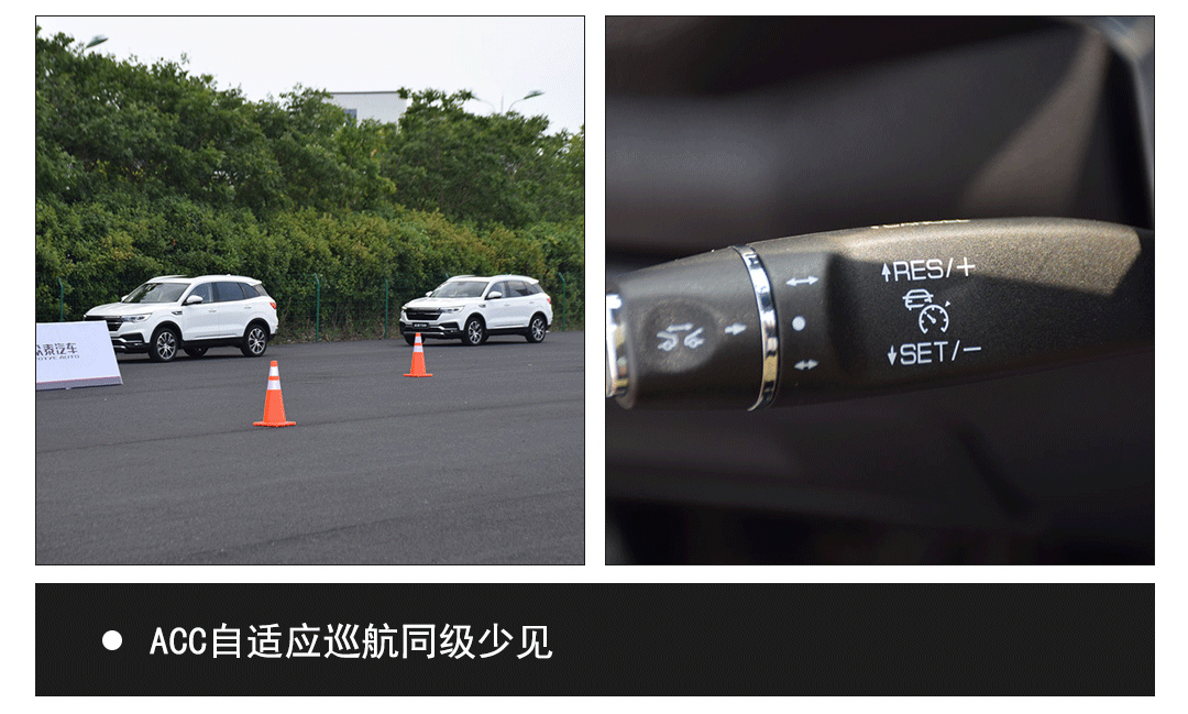 激烈的动态性能体验之后就是高科技配置体验,这其中有两样,首先就是ACC自适应巡航,这项功能通过方向盘左下方的拨杆实现,时速30公里以上方可开启,并可手动调节巡航速度和跟车距离,这时就可以完全解放驾驶者的双脚,有利于减缓长途高速公路开车时驾驶员的疲劳。若前方车辆突然急刹,T500也能及时自动作出刹车。