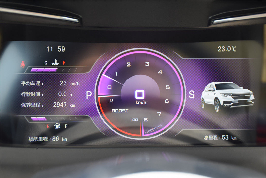 全液晶仪表盘有几种不同的主题,教授最喜欢的是这个运动主题,转速表左下方还有涡轮压力表,教授之前只在萨博系列、凯迪拉克CTS-V,福特福克斯ST / RS这些个性运动型车上见过