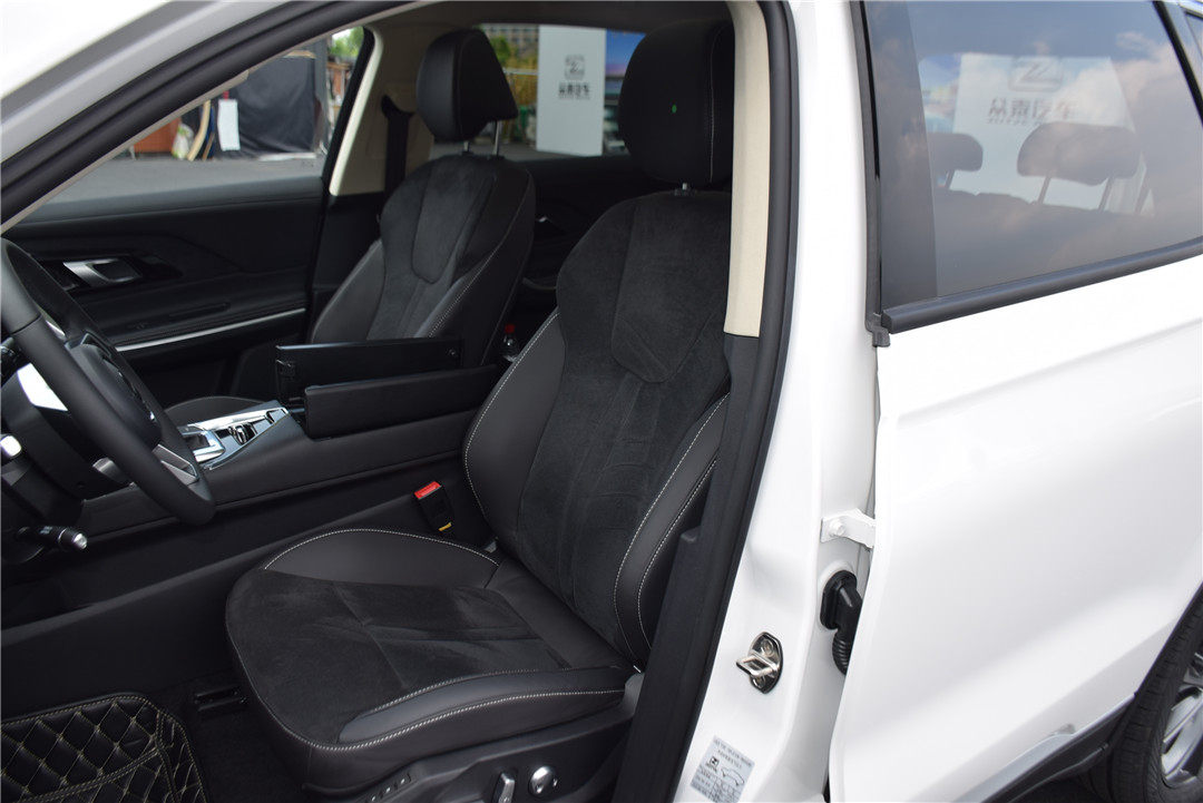 座椅采用皮质和翻毛皮材质拼接,包裹性和视觉运动性强,而且两侧护翼夹紧度适中,能适应各种身材驾驶者,不会有以往众泰车身材较壮的人坐着靠背会有一种挤压感