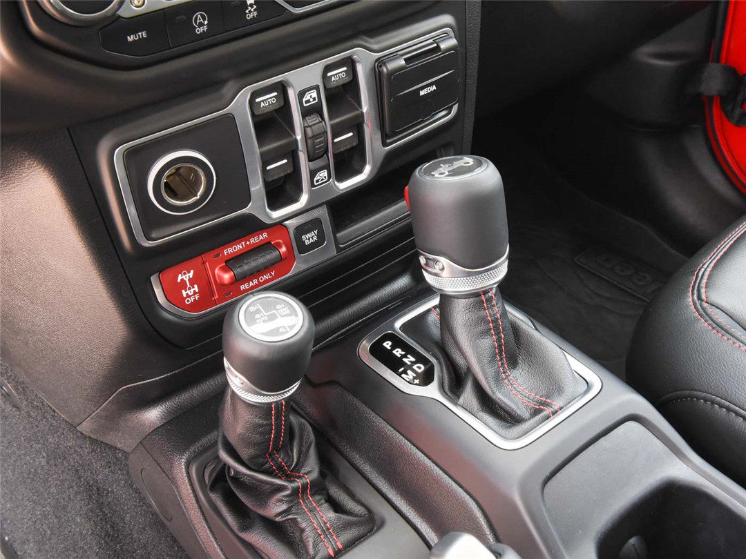 不同在于撒哈拉车型后桥主减速比为3.73,低速四驱传动比2.72,没有可断开的防倾杆和前后桥差速锁,正如其名字,撒哈拉更加注重沙漠越野而不是极限攀爬,较低的主减速比和传动比也不至于在沙地中因为扭矩过大打滑陷车。而卢比肯的主减速比和低速四驱传动比均为4.11,意味着轮上扭矩十分强大,配备可断开的防倾杆和前后桥差速锁,更注重极限攀爬能力。