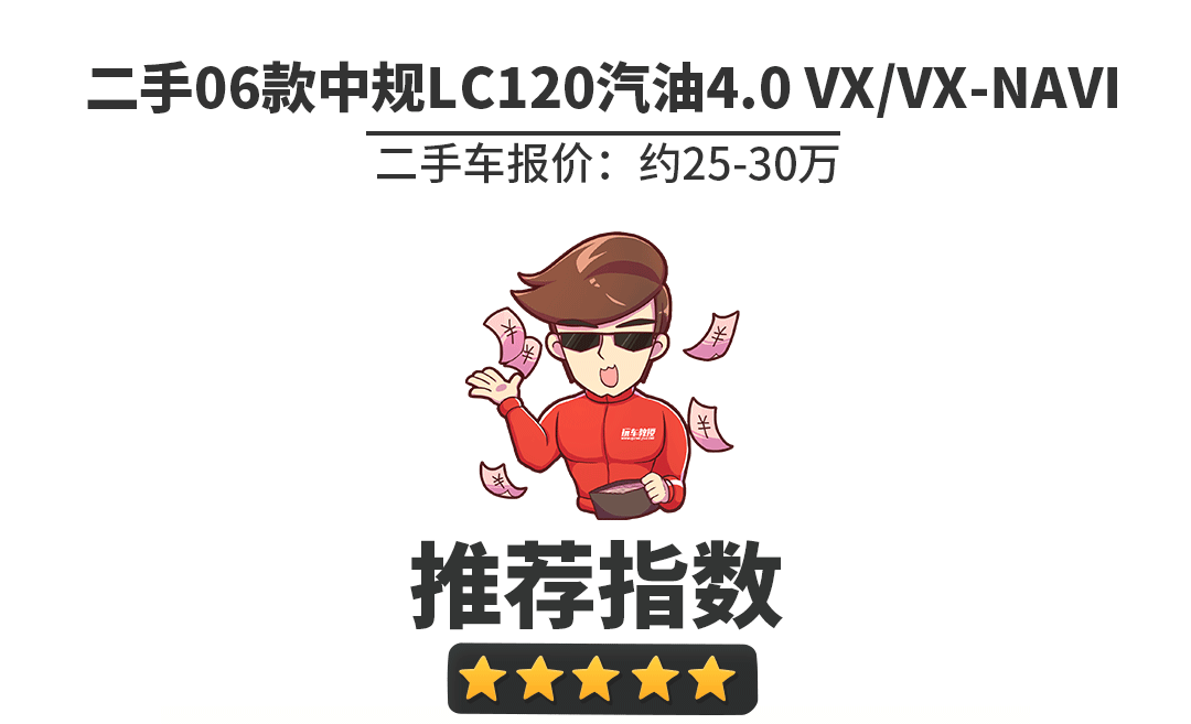 适合人群:预算有限,不介意买二手车,或者真正懂霸道,对LC120情有独钟的消费者